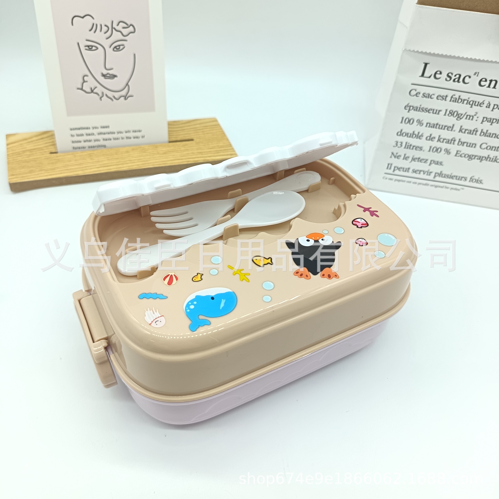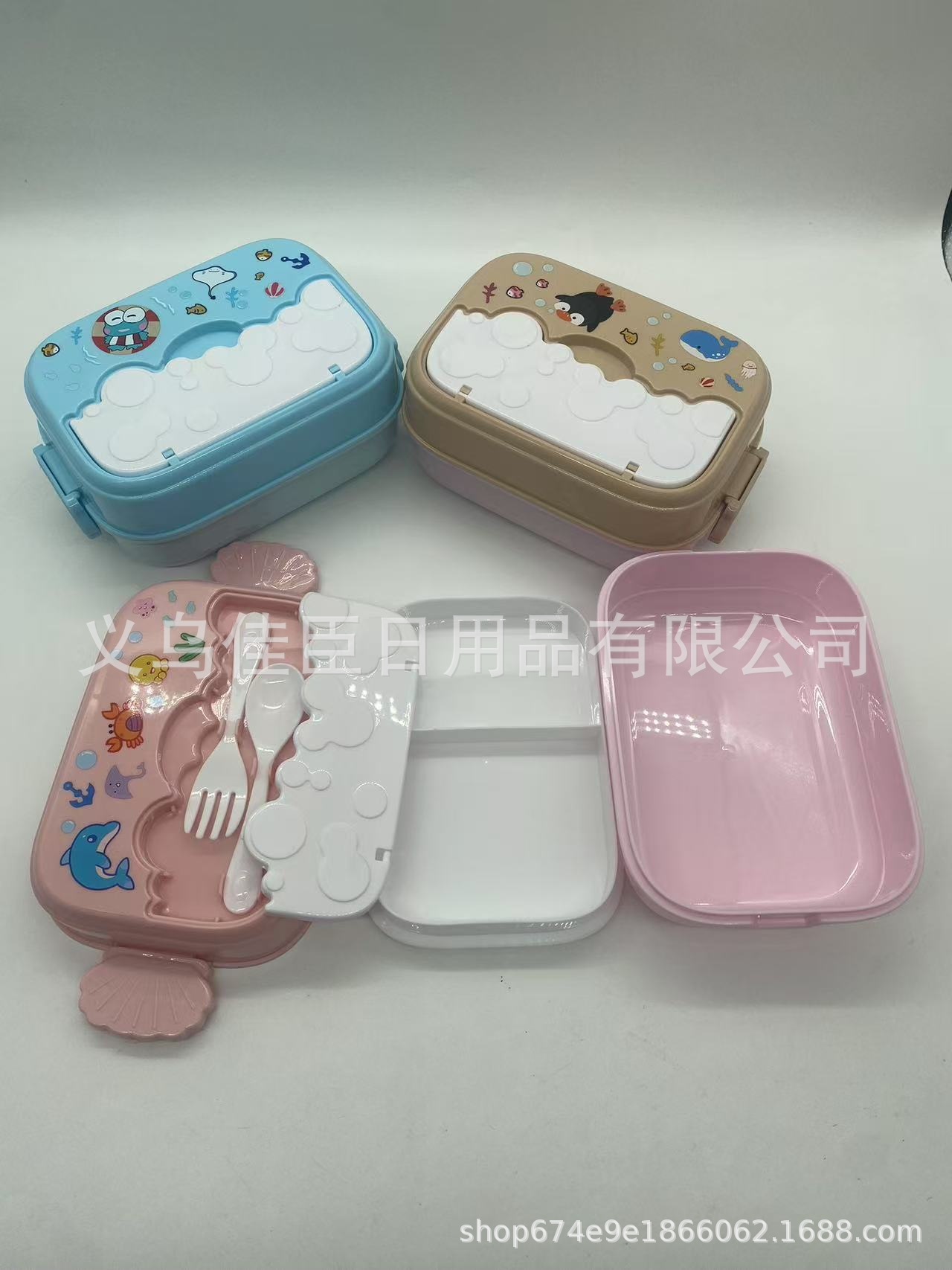 亚马逊批发儿童饭盒卡通可爱学生上班族午餐盒带餐具双层分格野餐