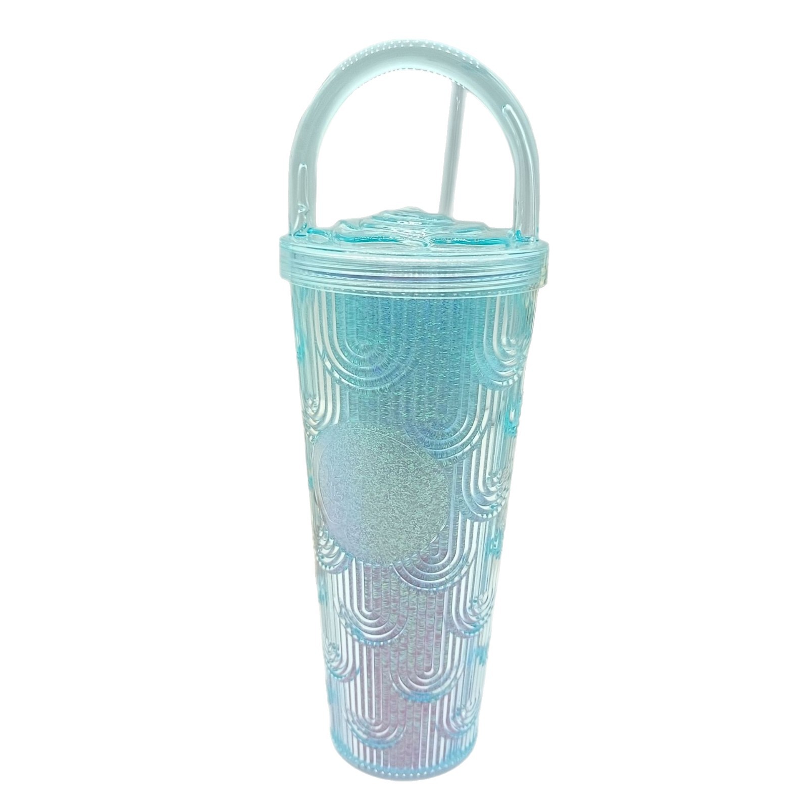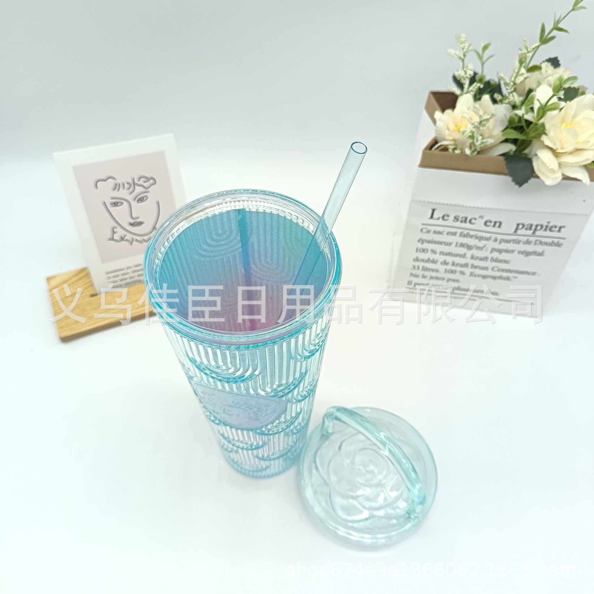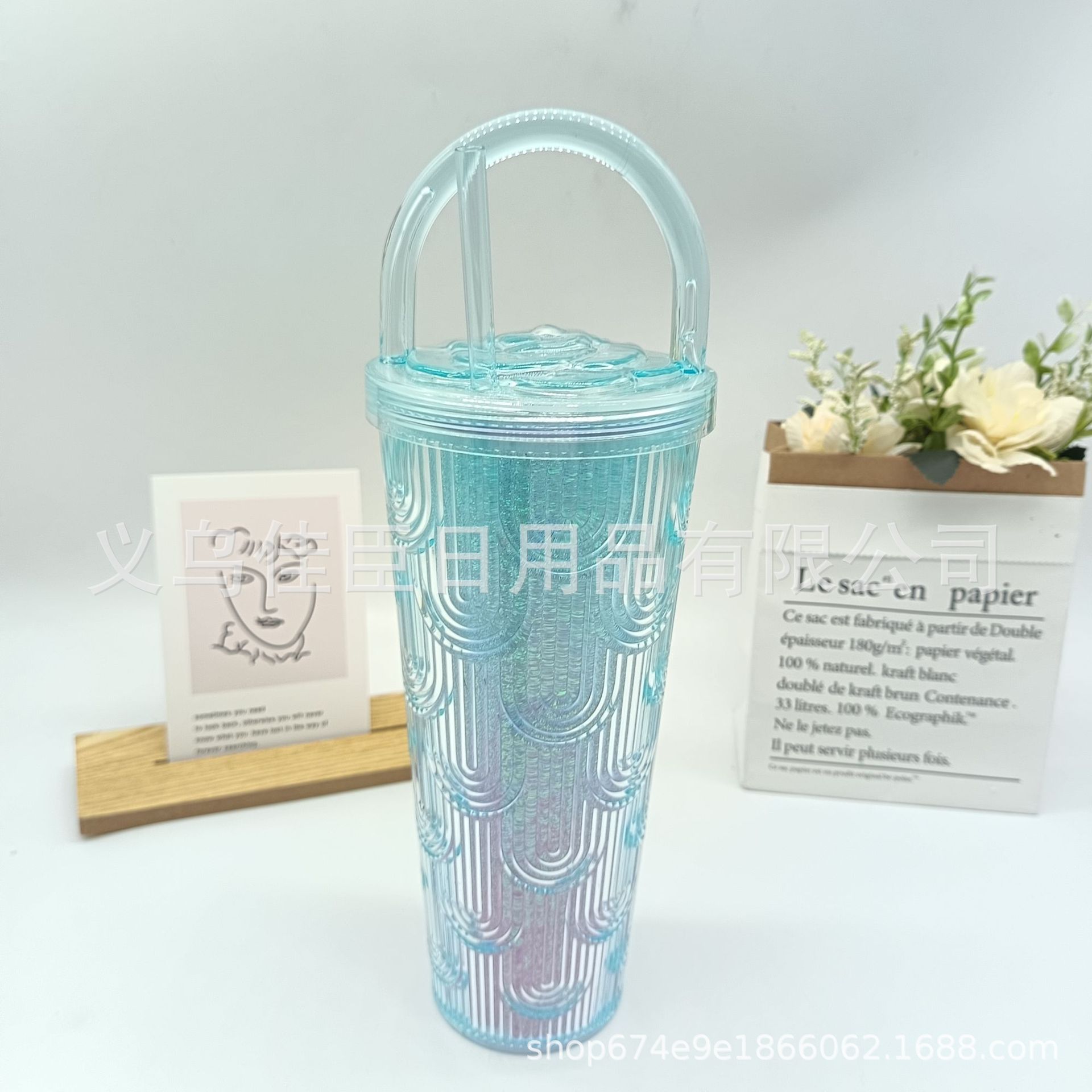 亚马逊夏季爆款双层塑料吸管杯大容量闪粉炫彩水杯饮料杯手提杯仙