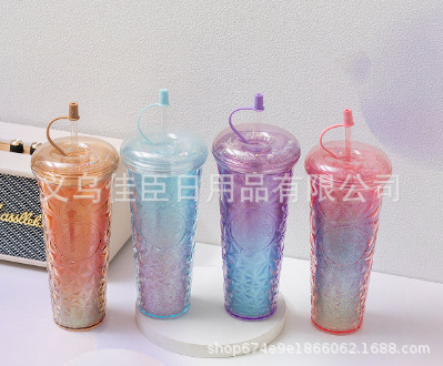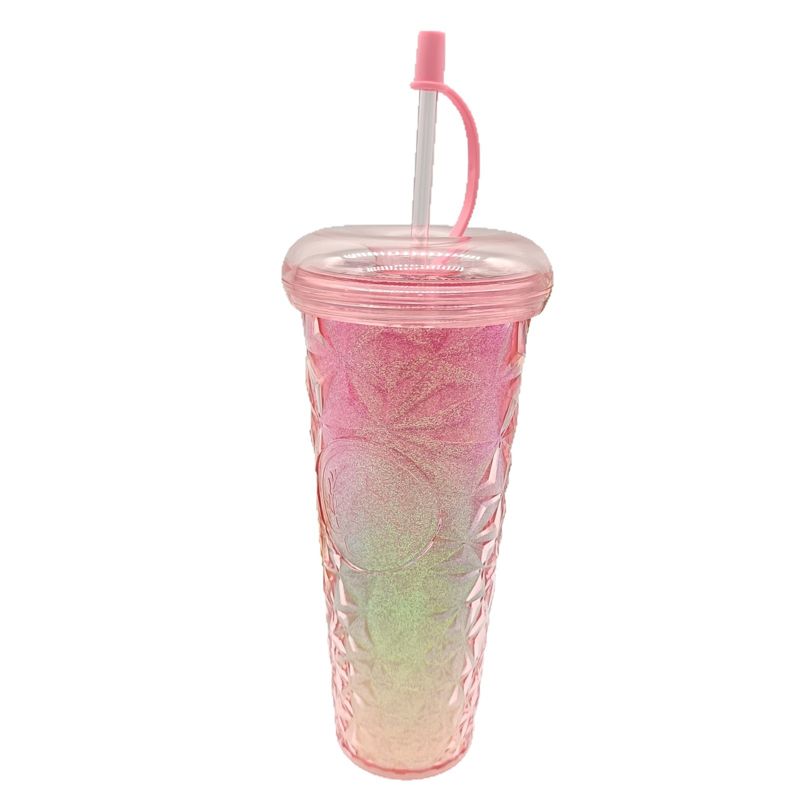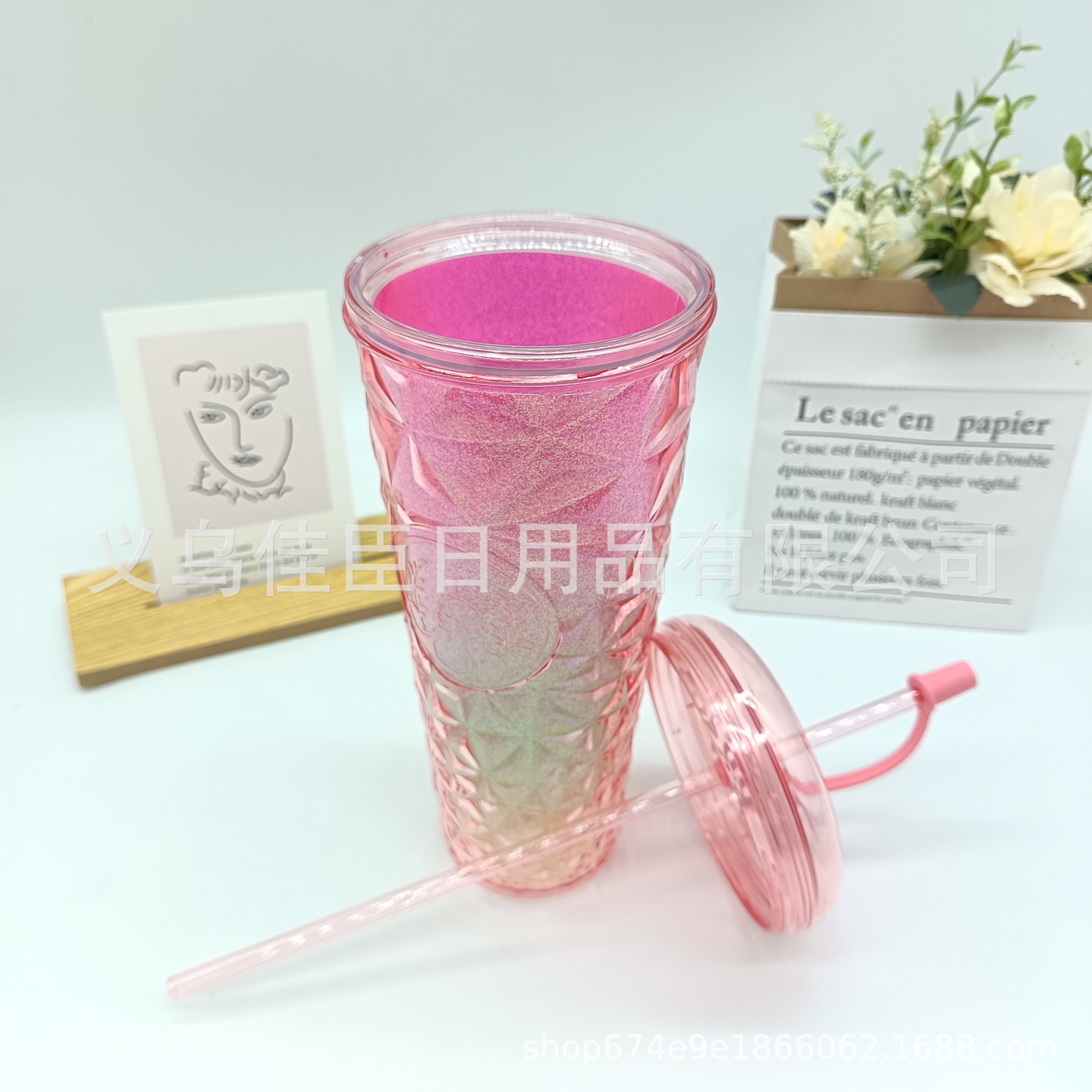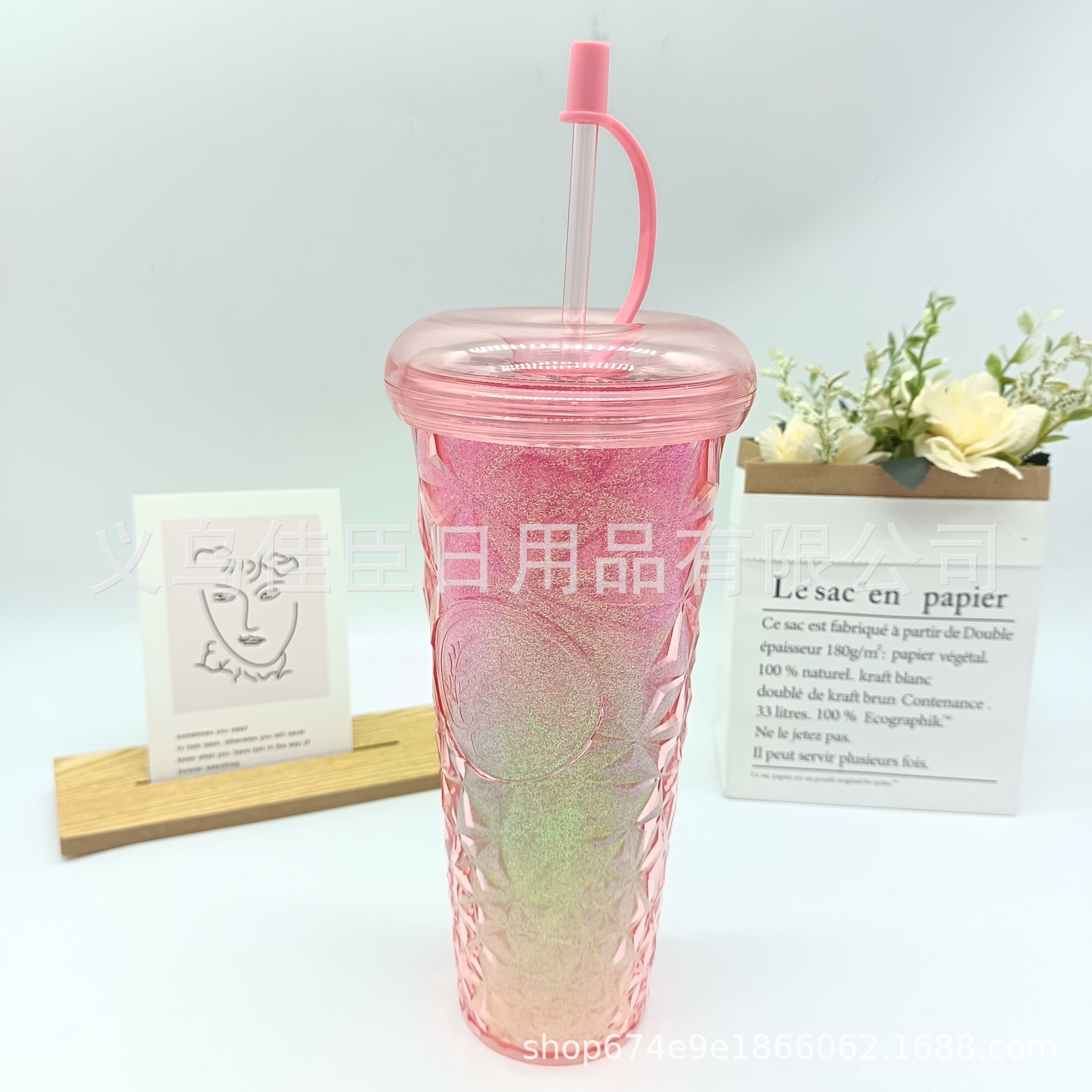 跨境新款闪粉超闪大容量吸管杯渐变彩虹水杯少女心甜甜圈造型杯盖