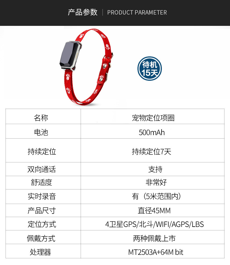 蓝宝石宠物追踪定位跟踪器猫咪狗防丢器防水 4G定位器宠物防走丢