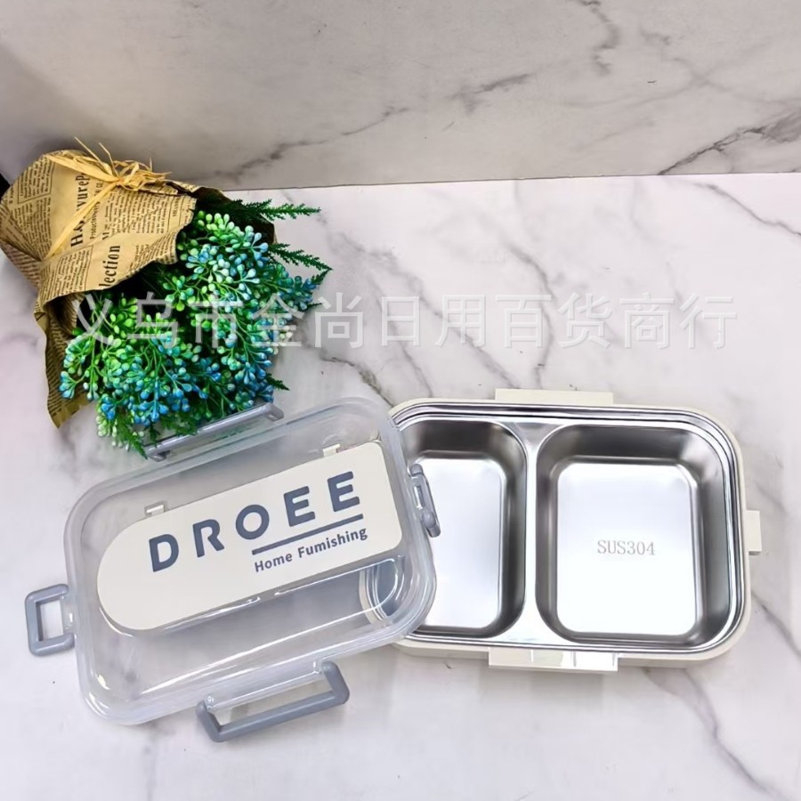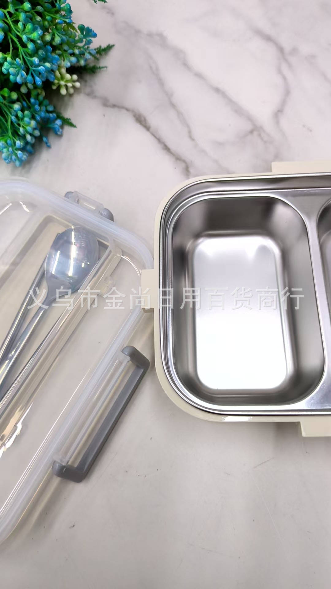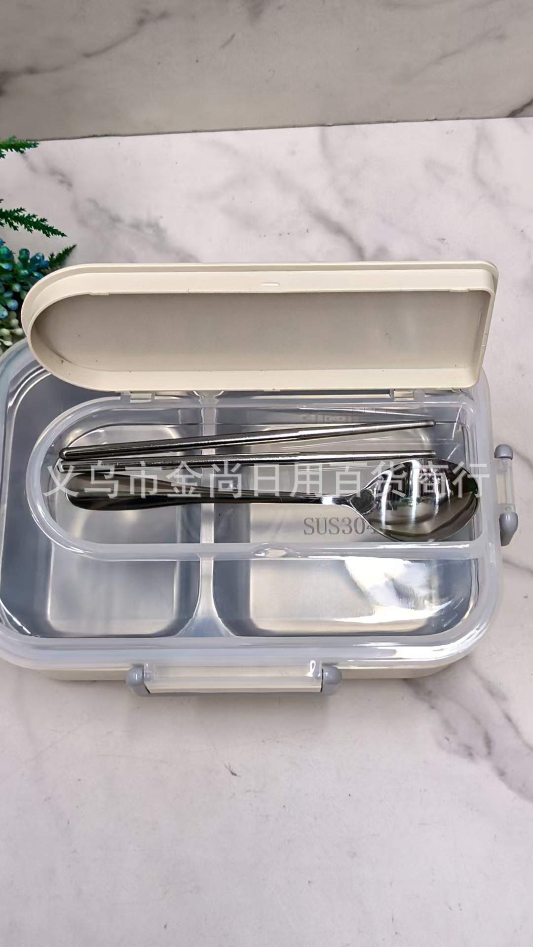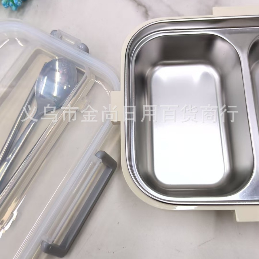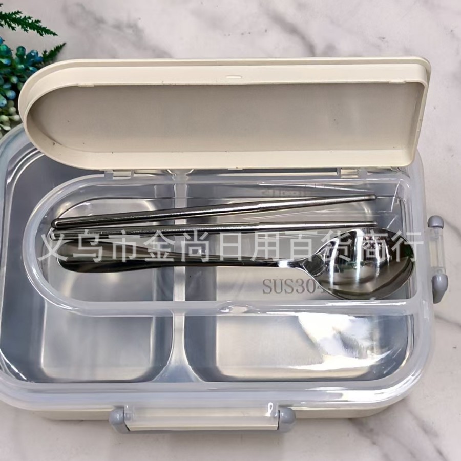 不锈钢带筷子和勺子饭盒分格便当盒便携式提手学生上班族午餐盒