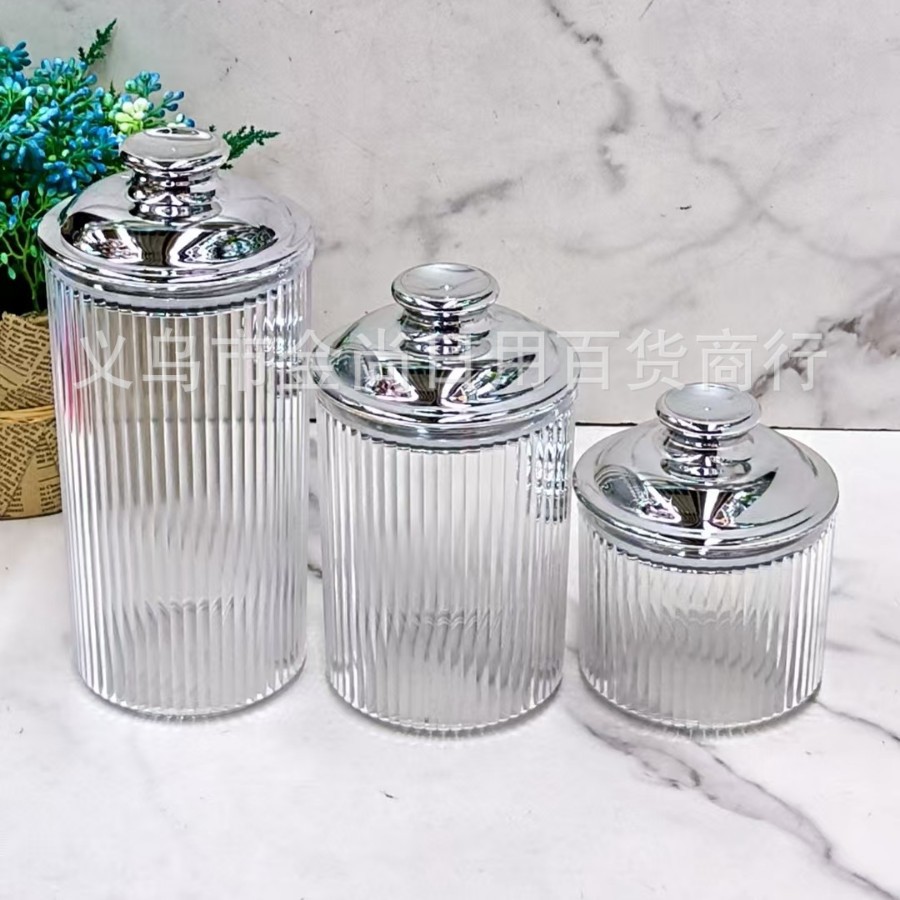 轻奢条纹不带彩纸密封罐厨房干果存放罐糖果罐塑料密封罐