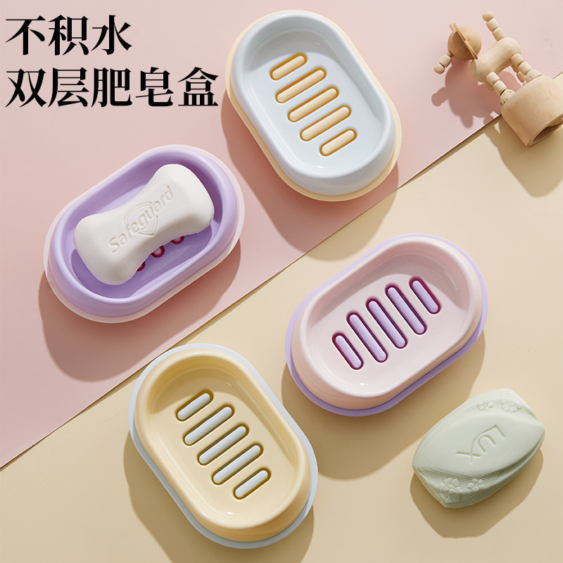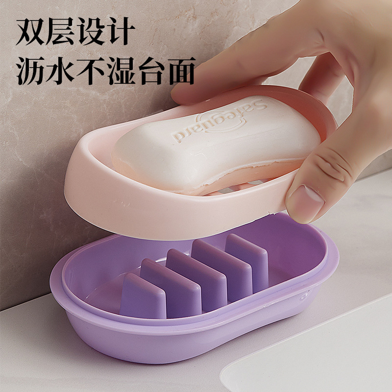 新款可爱圆形简约双层沥水肥皂盒浴室洗脸香皂盒香皂盒洗手间塑料