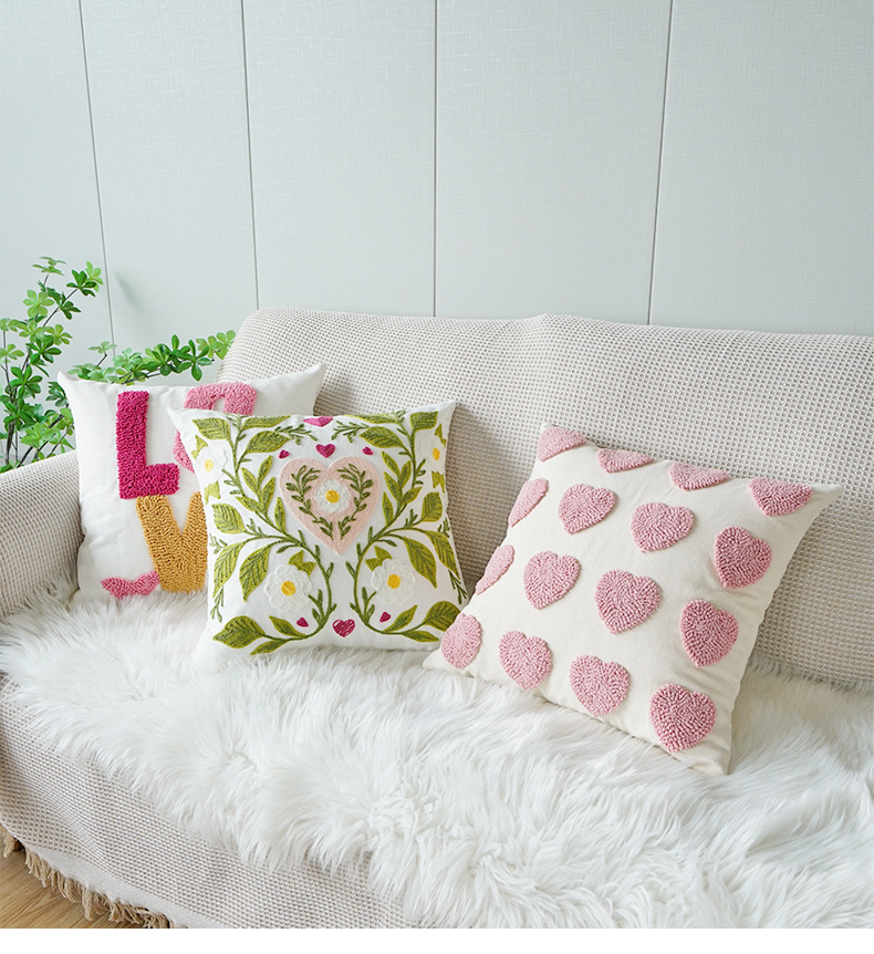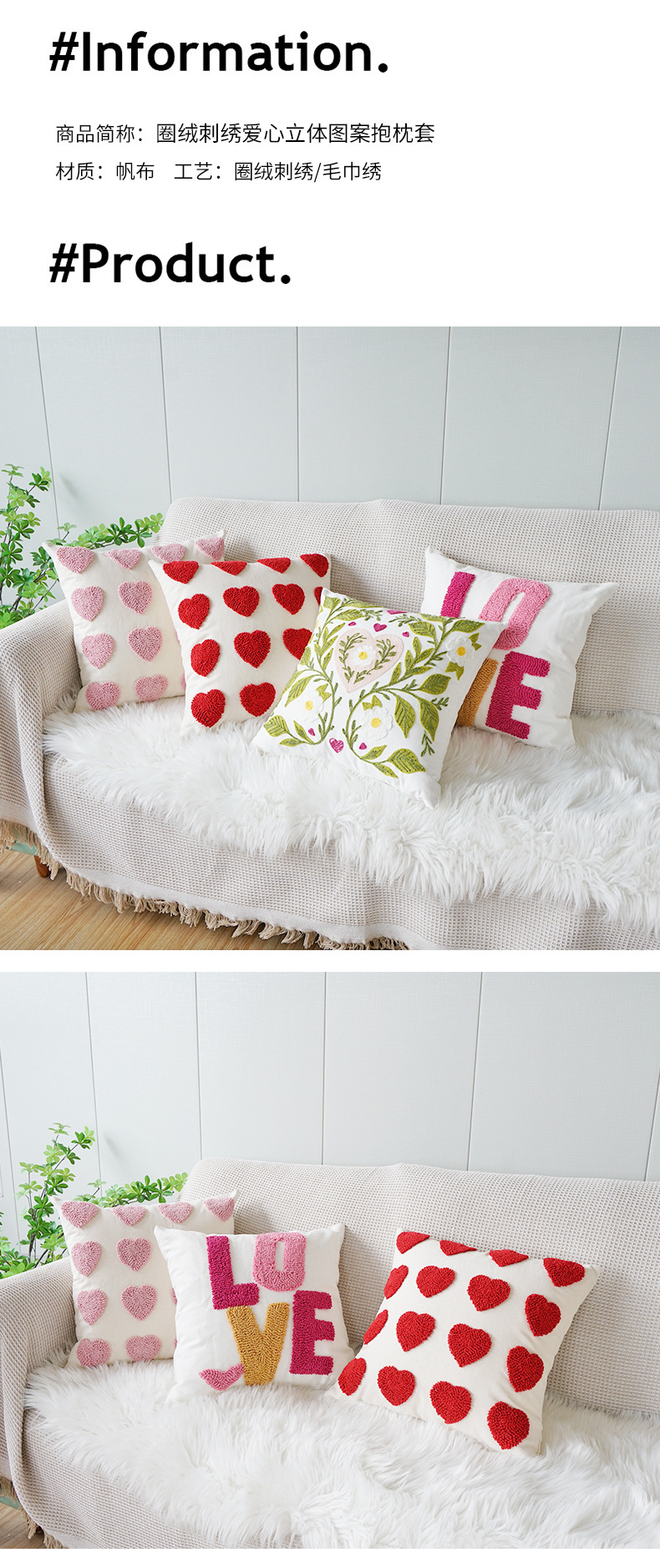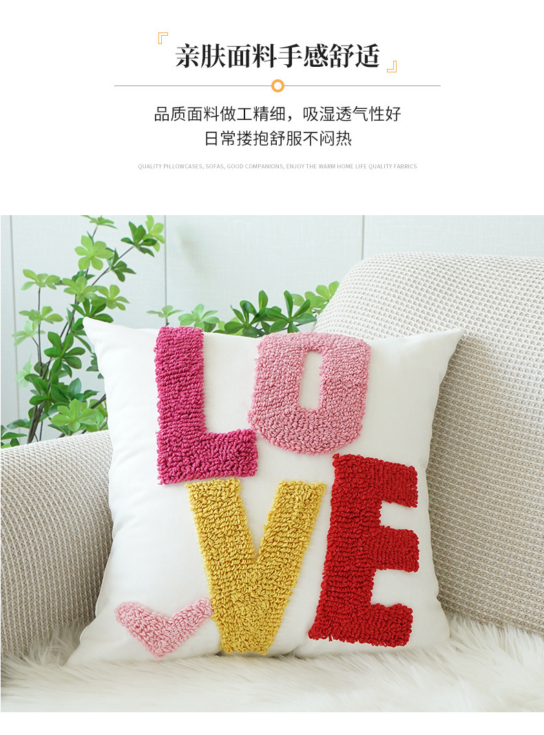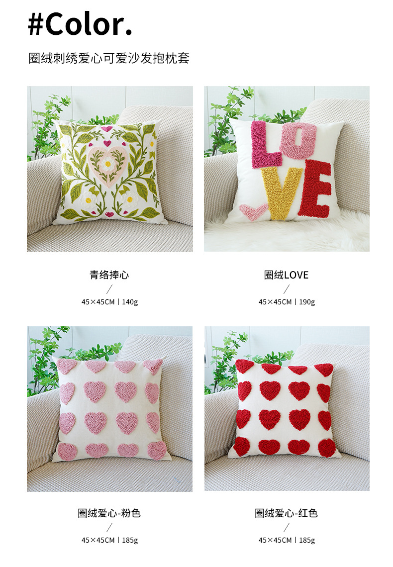ins风圈绒抱枕套现代简约小清新少女爱心民宿沙发样板间靠垫套