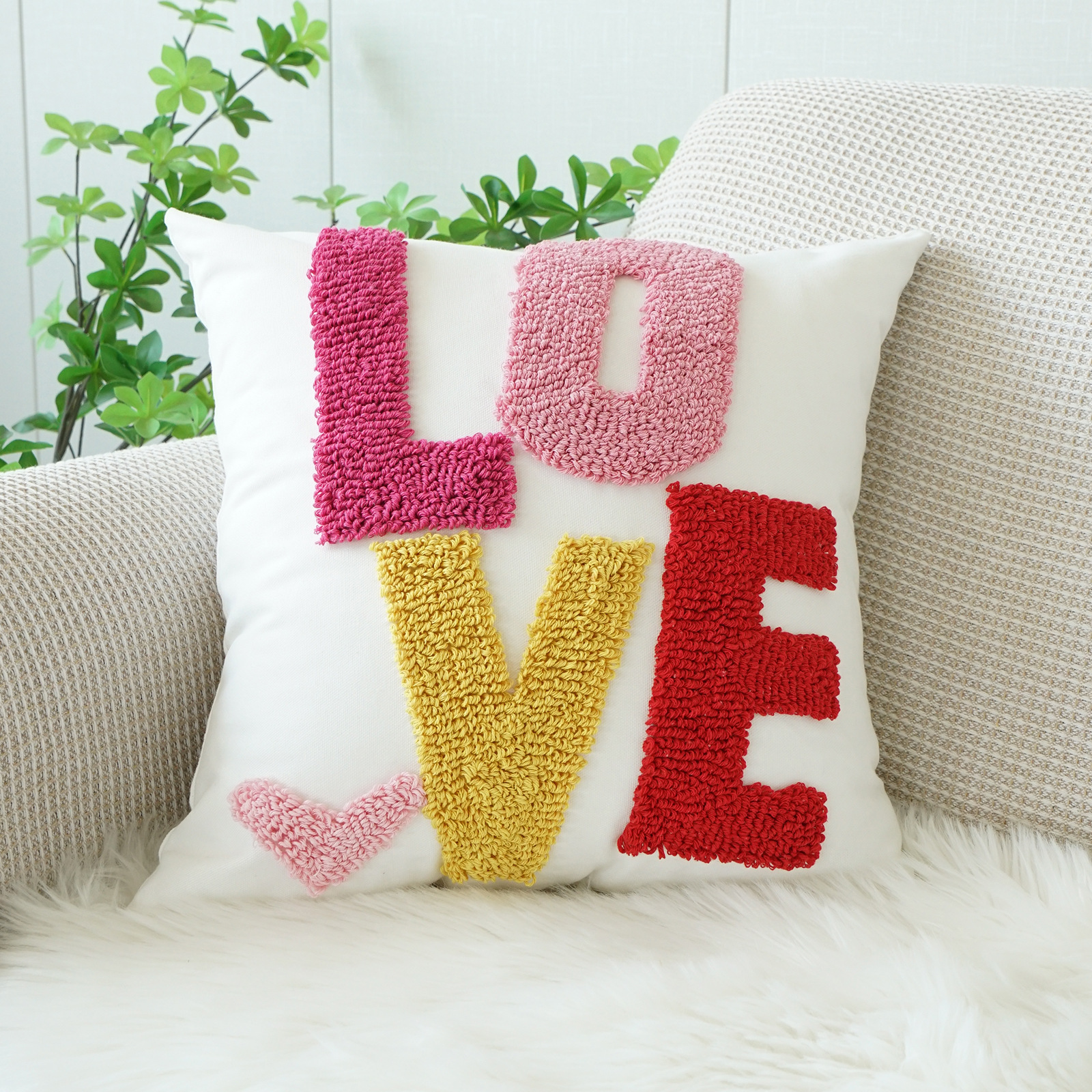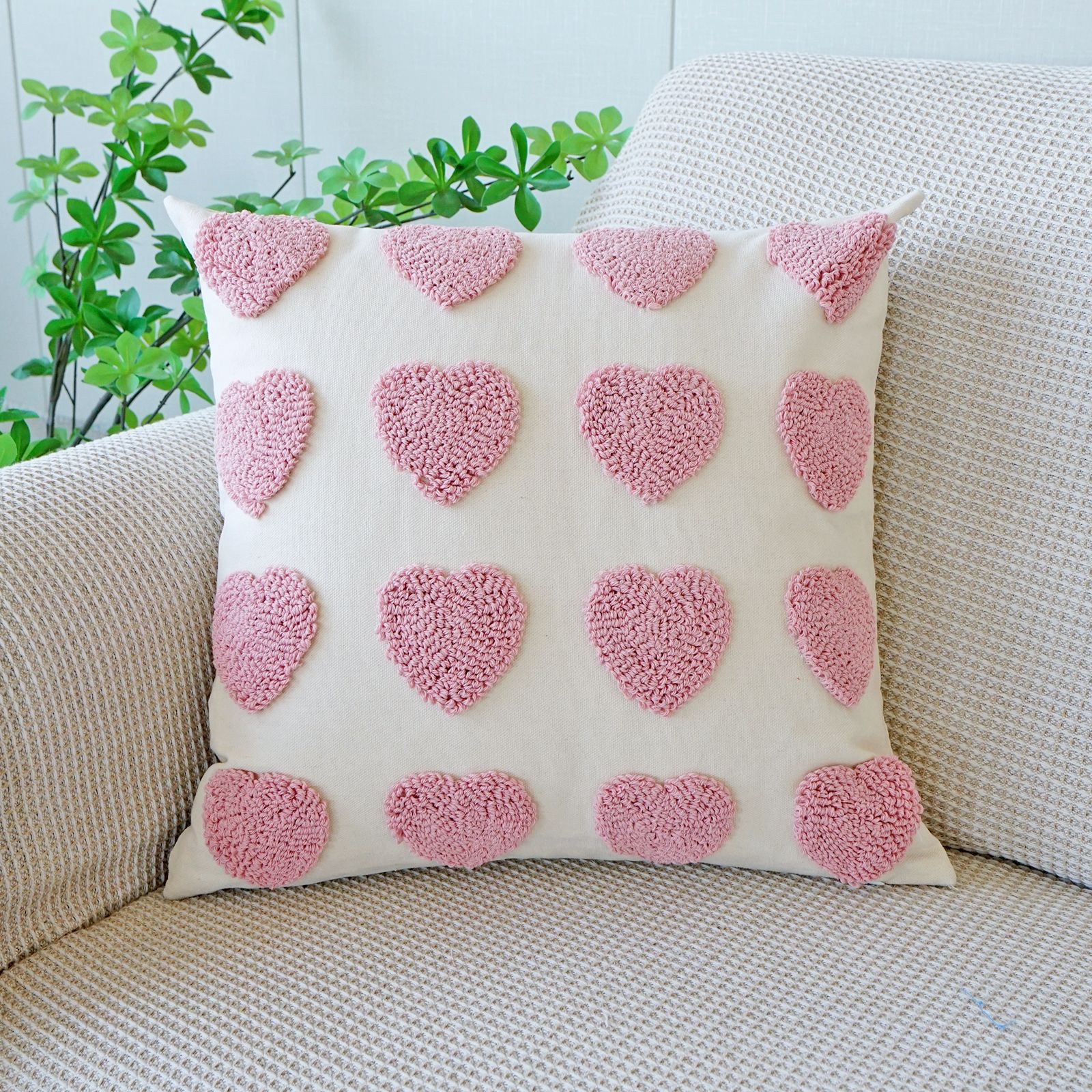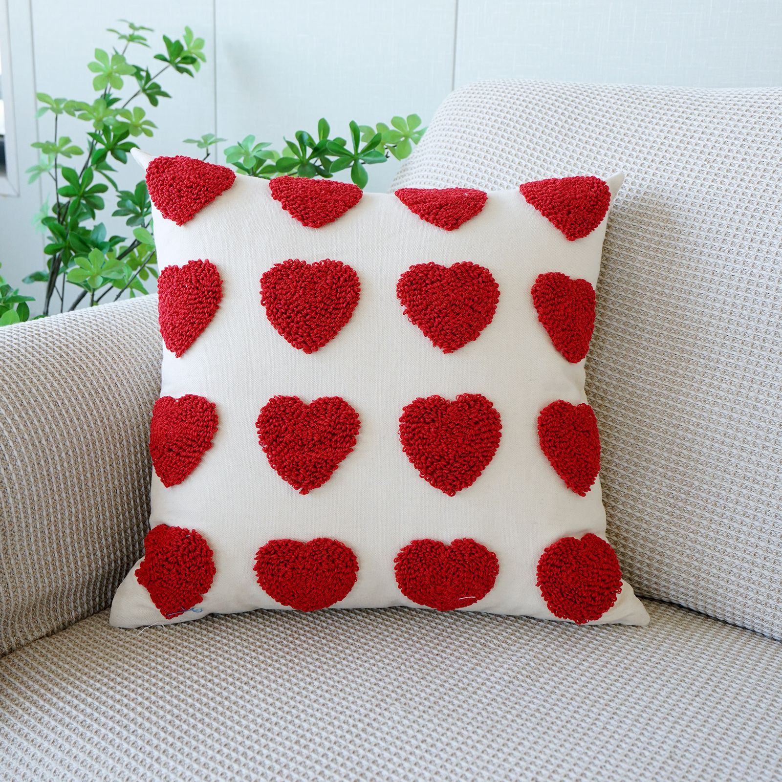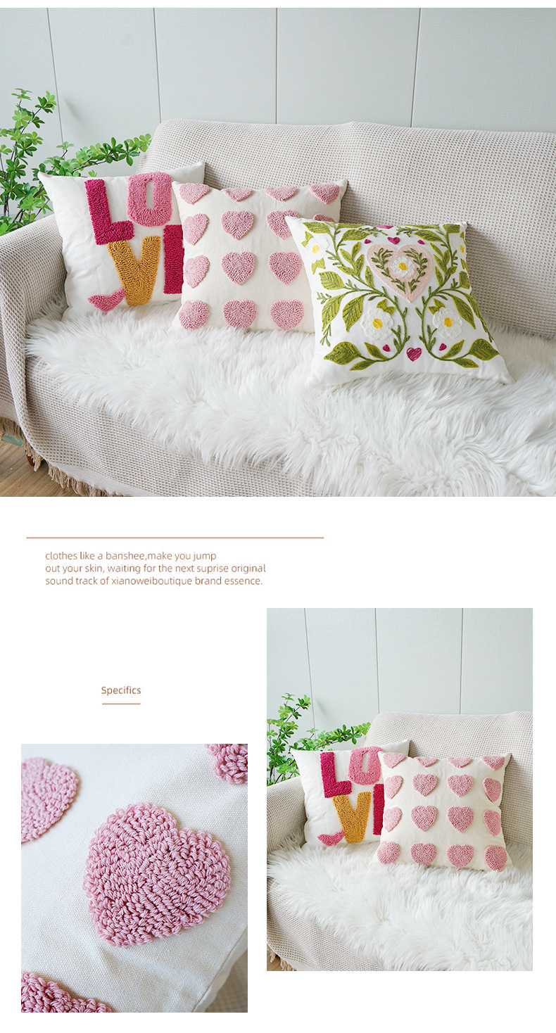 ins风圈绒抱枕套现代简约小清新少女爱心民宿沙发样板间靠垫套