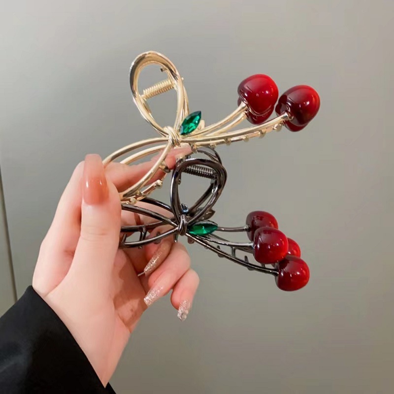 樱桃蝴蝶结抓夹盘发鲨鱼夹发夹发卡发饰女樱桃头饰发饰