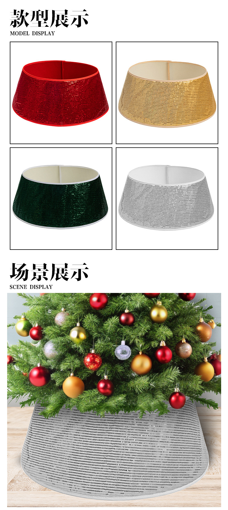 跨境新款圣诞亮片树围摆件圣诞树项圈围栏场景布置道具工艺品批发