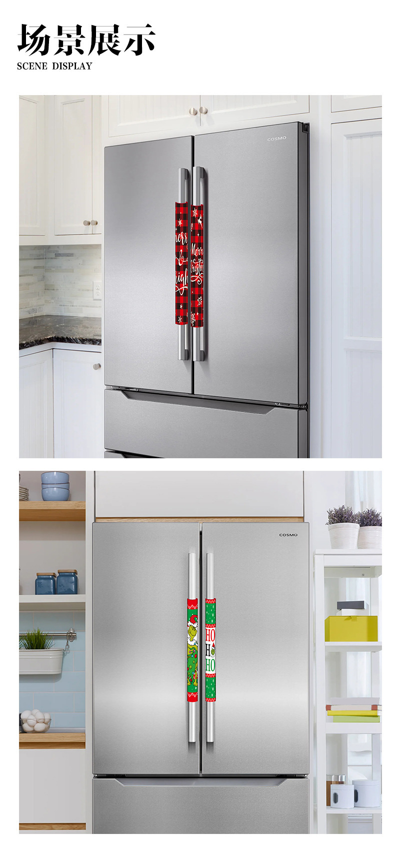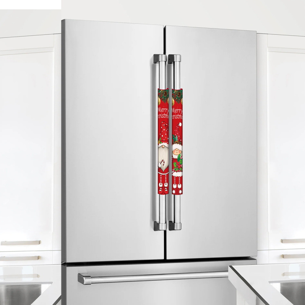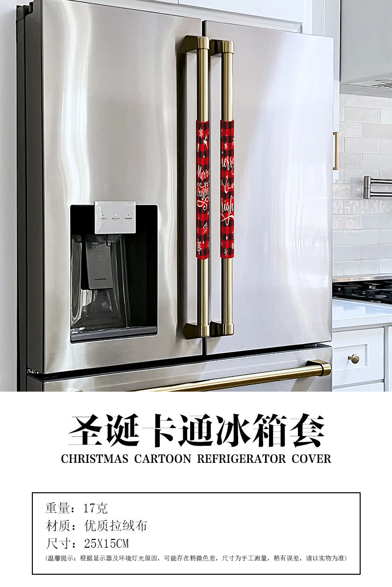跨境新款圣诞节冰箱门把手套防静电双开门卡通印花圣诞装饰品批发
