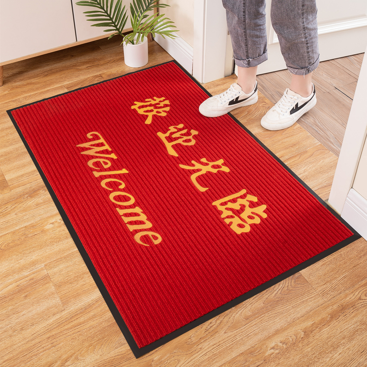欢迎光临40*60 50*80 60*90没有英文Welcome ,人工裁剪黑边会小2CM左右介意者勿拍。定制无字产品部分没有黑边或者只有两条黑边,其它常规都带黑边。 可定制公司LOGO