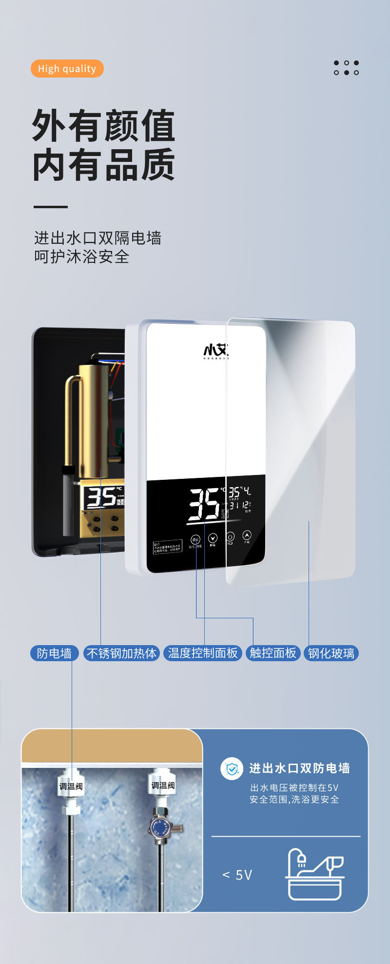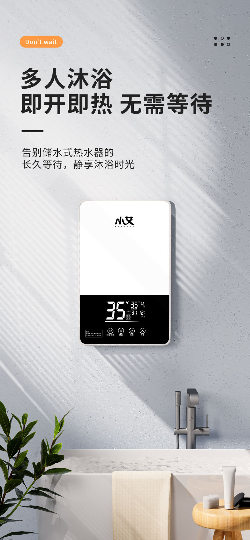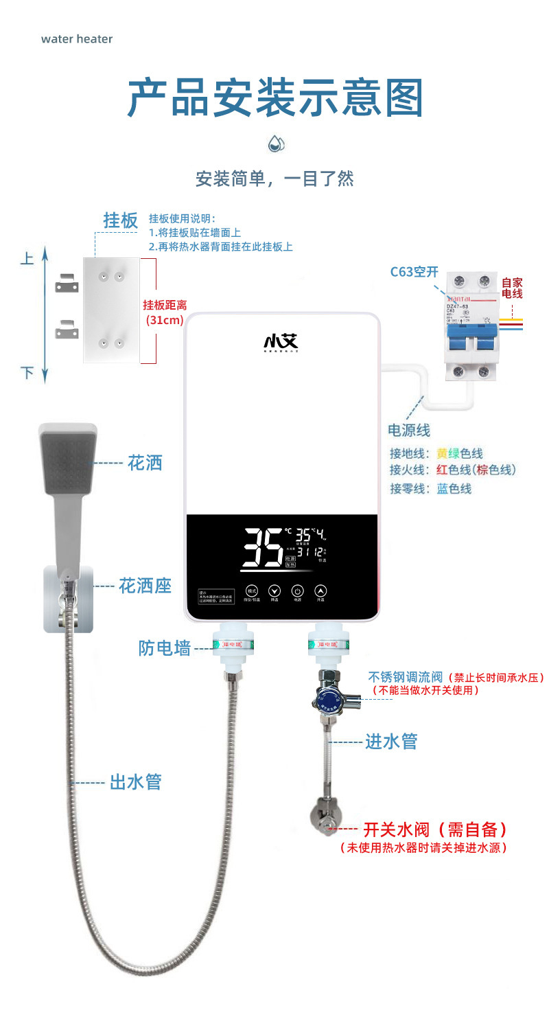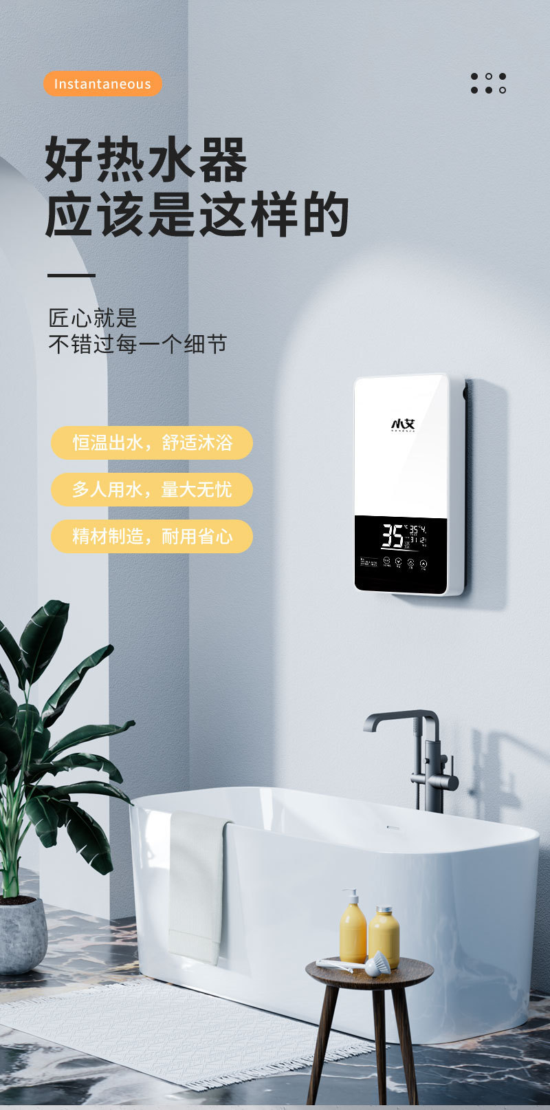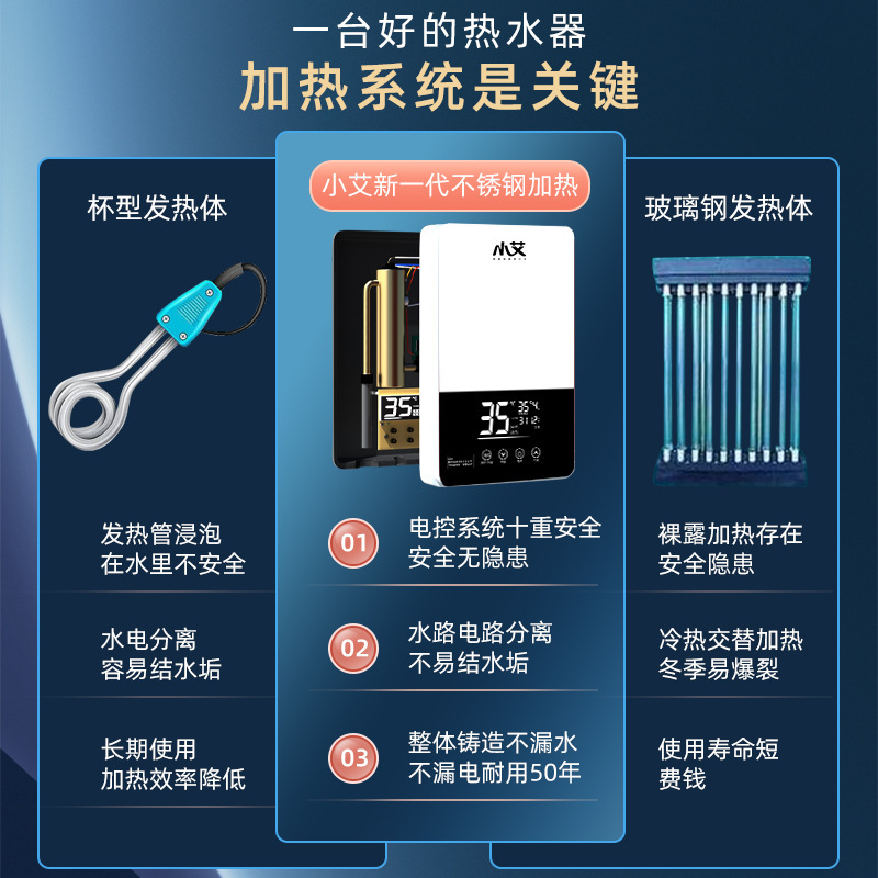 小艾即热式电热水器家用洗澡淋浴过水热变频速热热水器智能控温