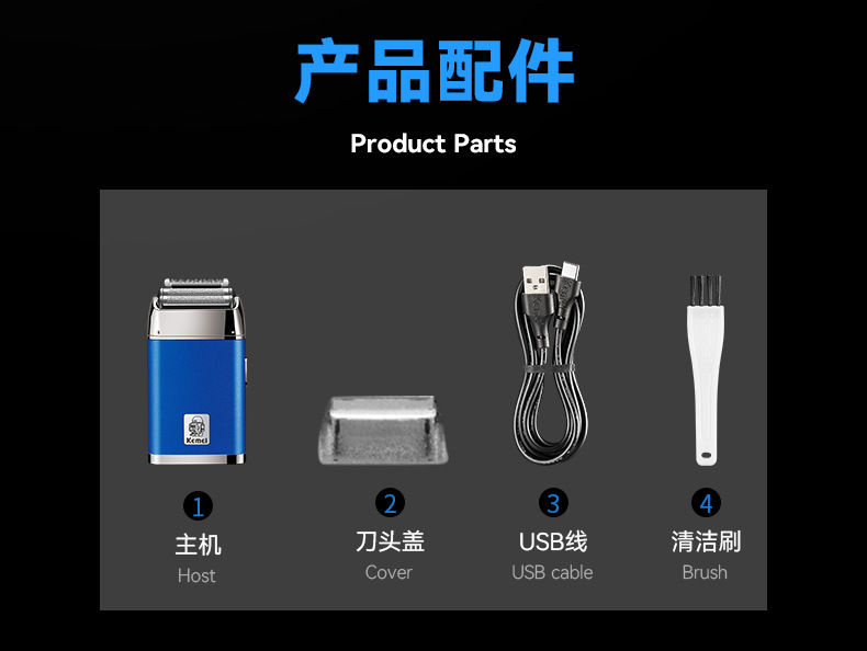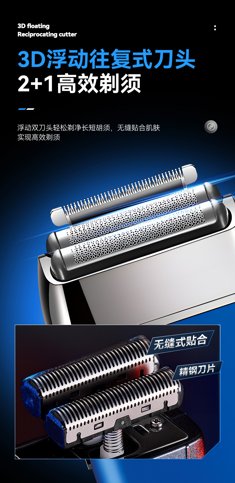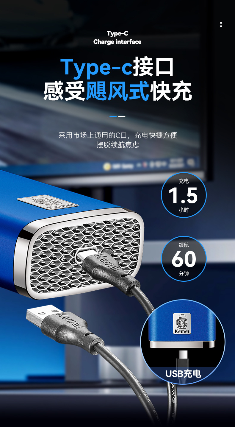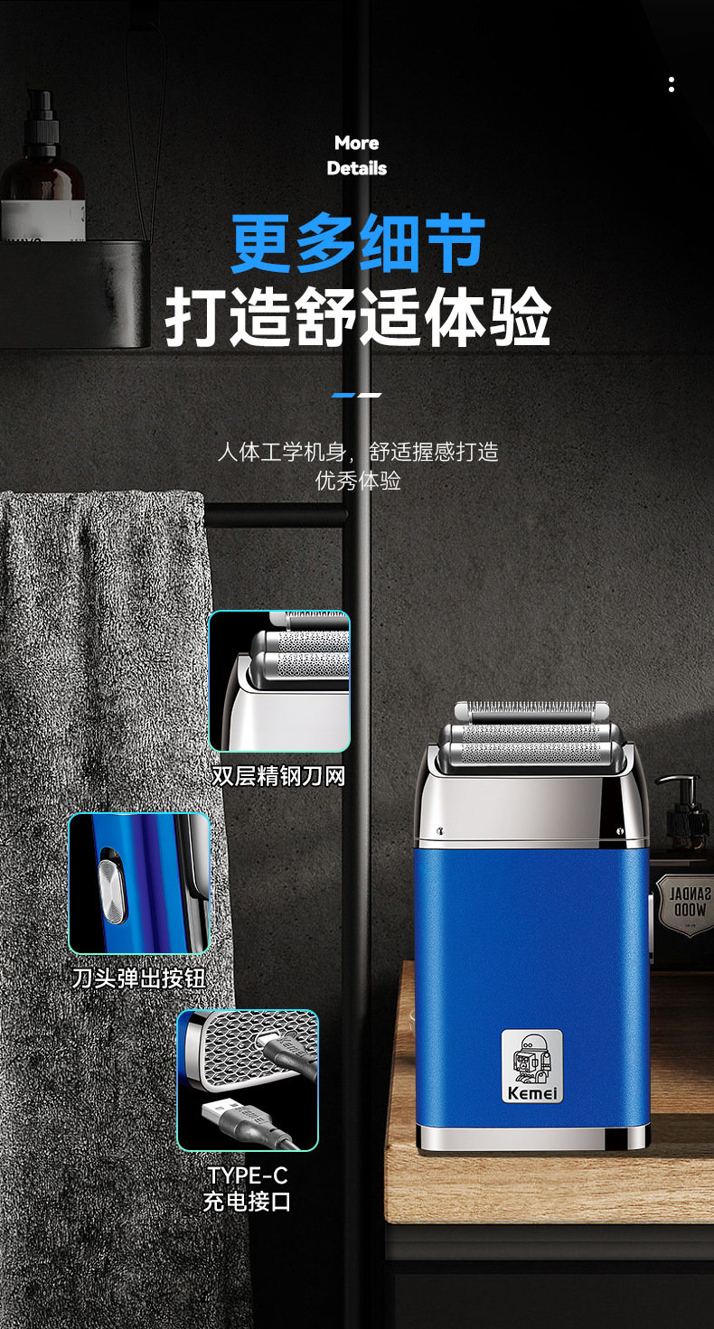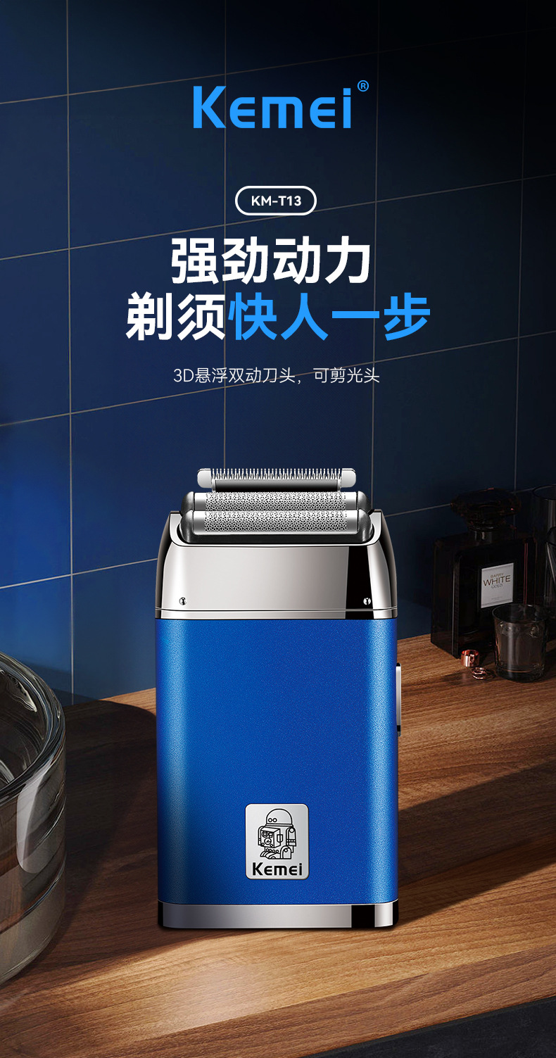 科美kemei跨境二合一微型电动剃须刀多功能光头剪迷你男士刮胡刀