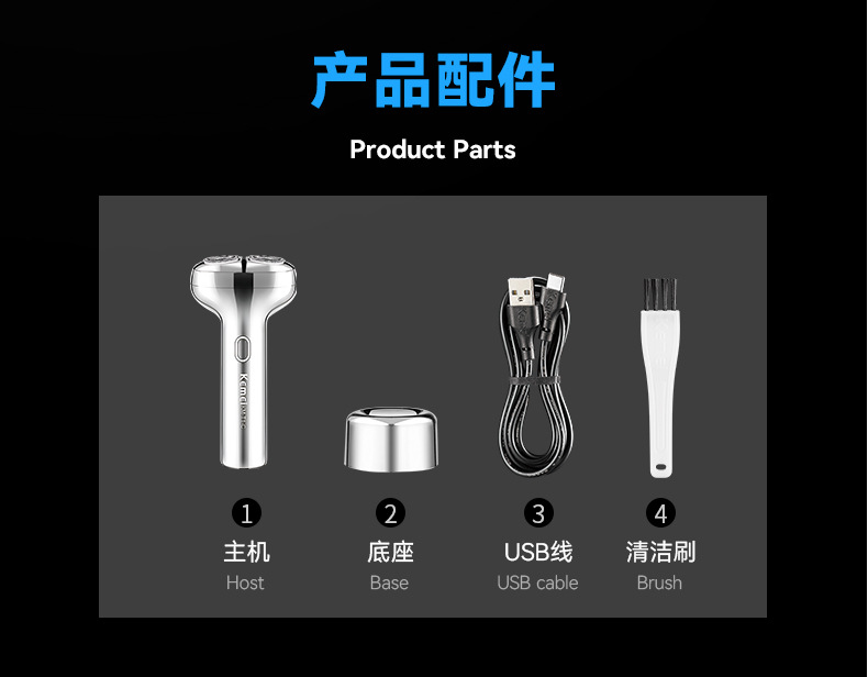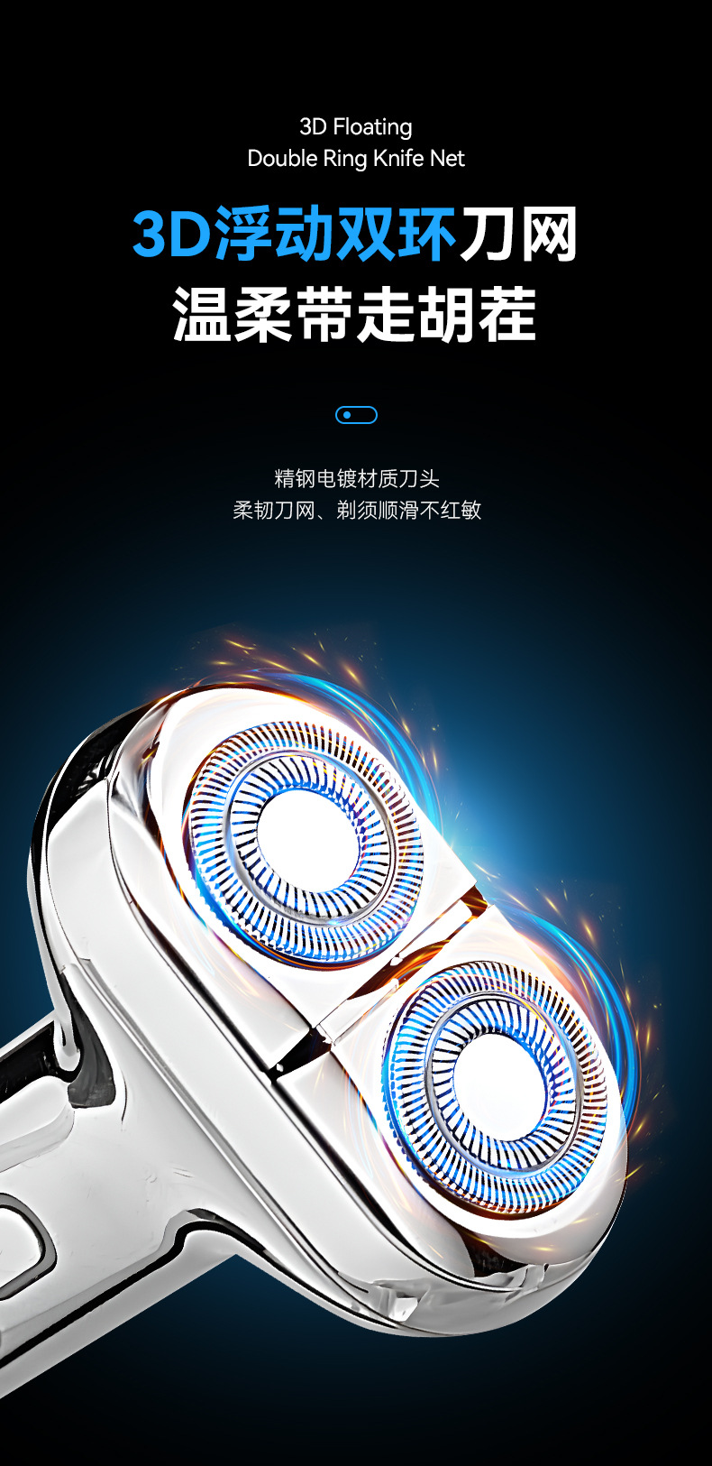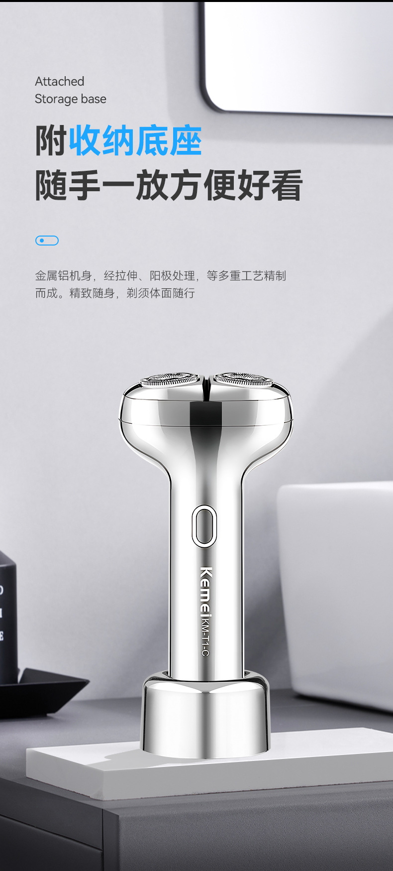 科美KM-T1-C新款高颜值通用浮动双刀网刮胡刀防水便携电动剃须刀