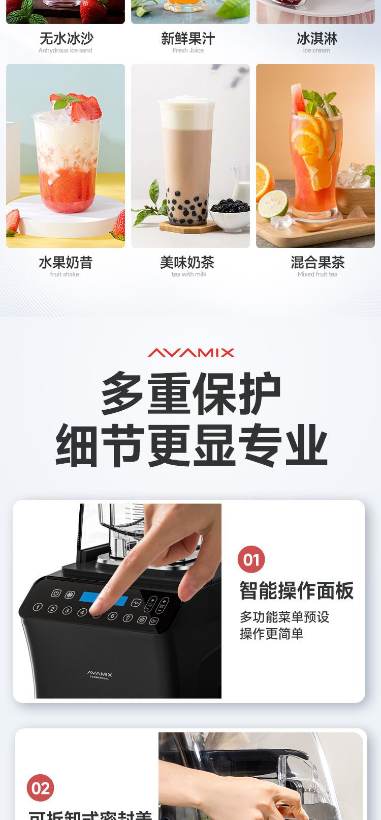 AVAMIX沙冰机商用奶茶店全自动带罩绵绵冰奶昔碎冰机静音破壁机