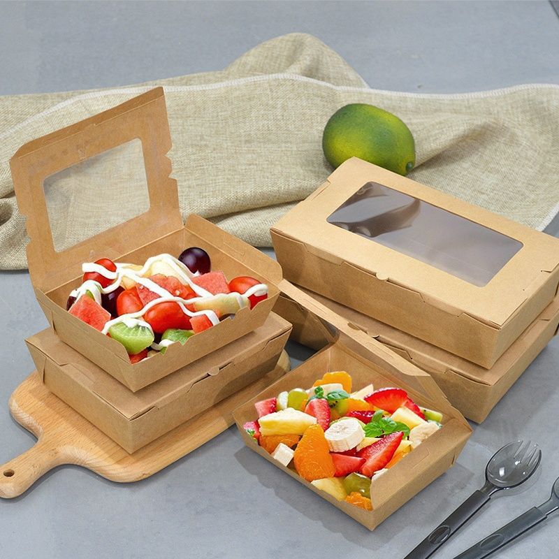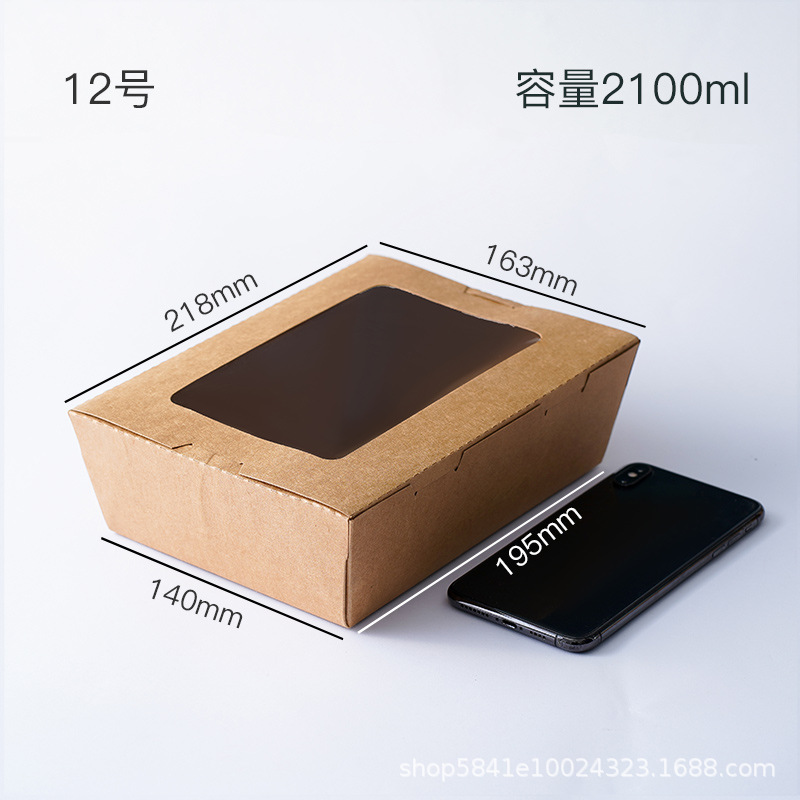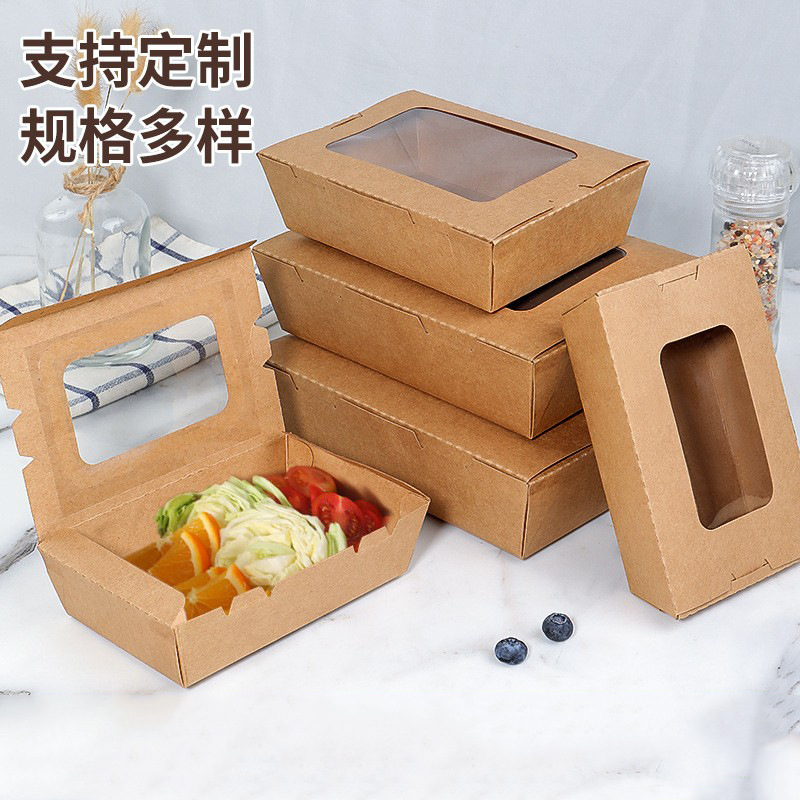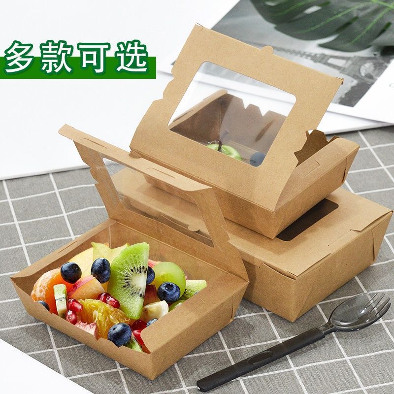 一次性开窗牛皮纸翻盖外卖小吃打包盒炸鸡串串快餐盒沙拉寿司餐盒