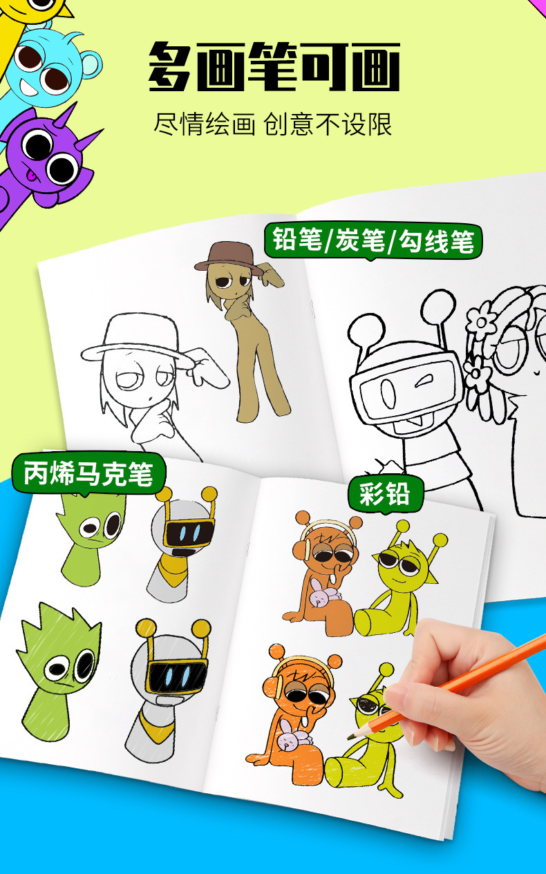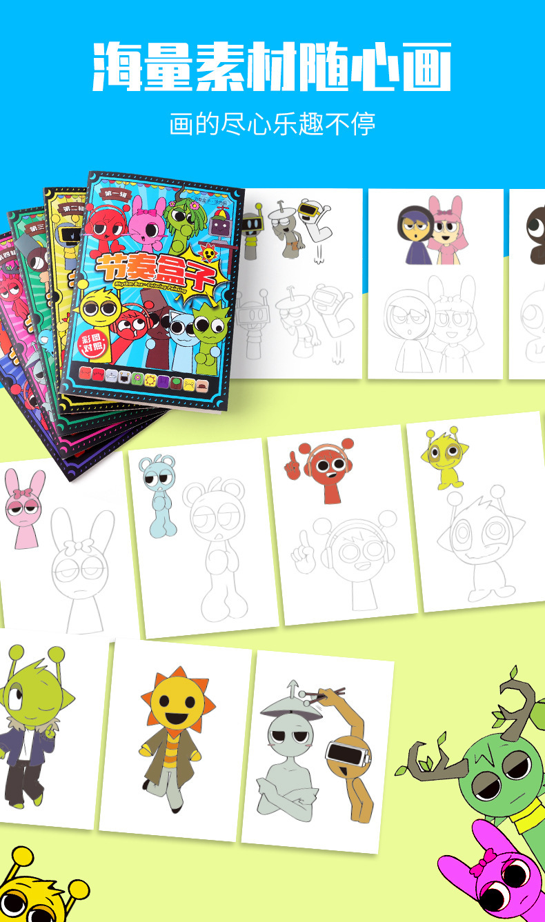 节奏盒子描摹游戏绘画本涂色本填色入门线稿画画本临摹儿童涂色