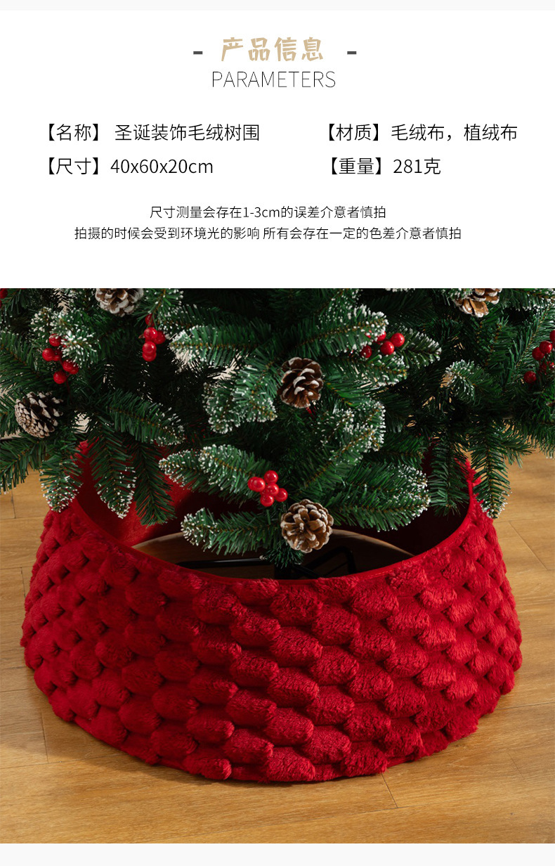 跨境亚马逊新款圣诞节装饰毛绒花纹树围家居圣诞树酒店装饰树裙