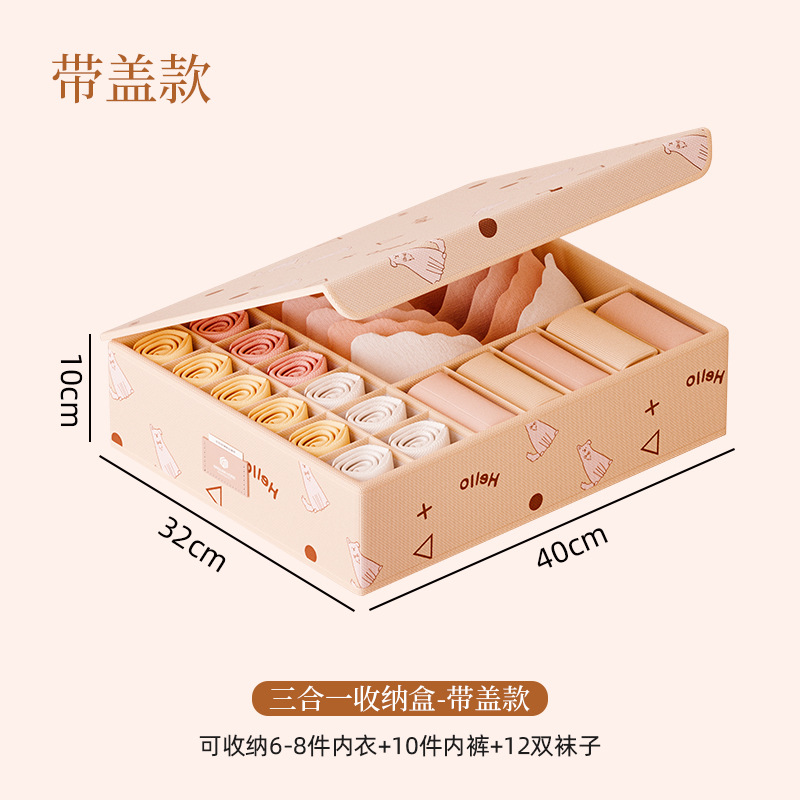 可水洗三合一多功能收纳盒内衣裤子有盖整理盒折叠抽屉储物盒