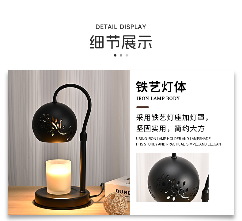 新款融蜡灯香薰灯镂空灯罩融烛灯燃蜡灯融蜡暖灯床头灯亚马逊台灯