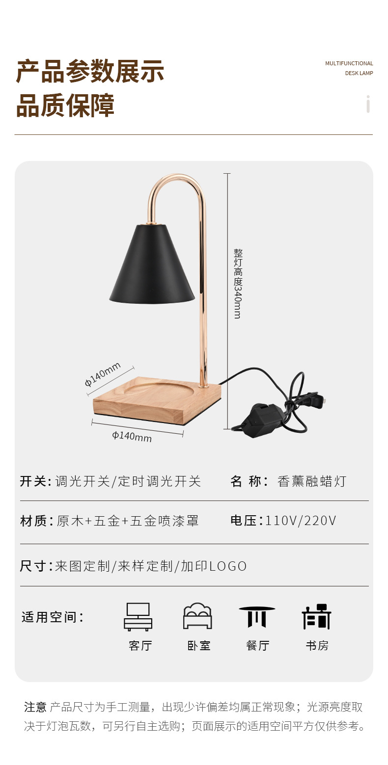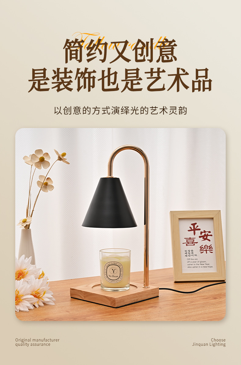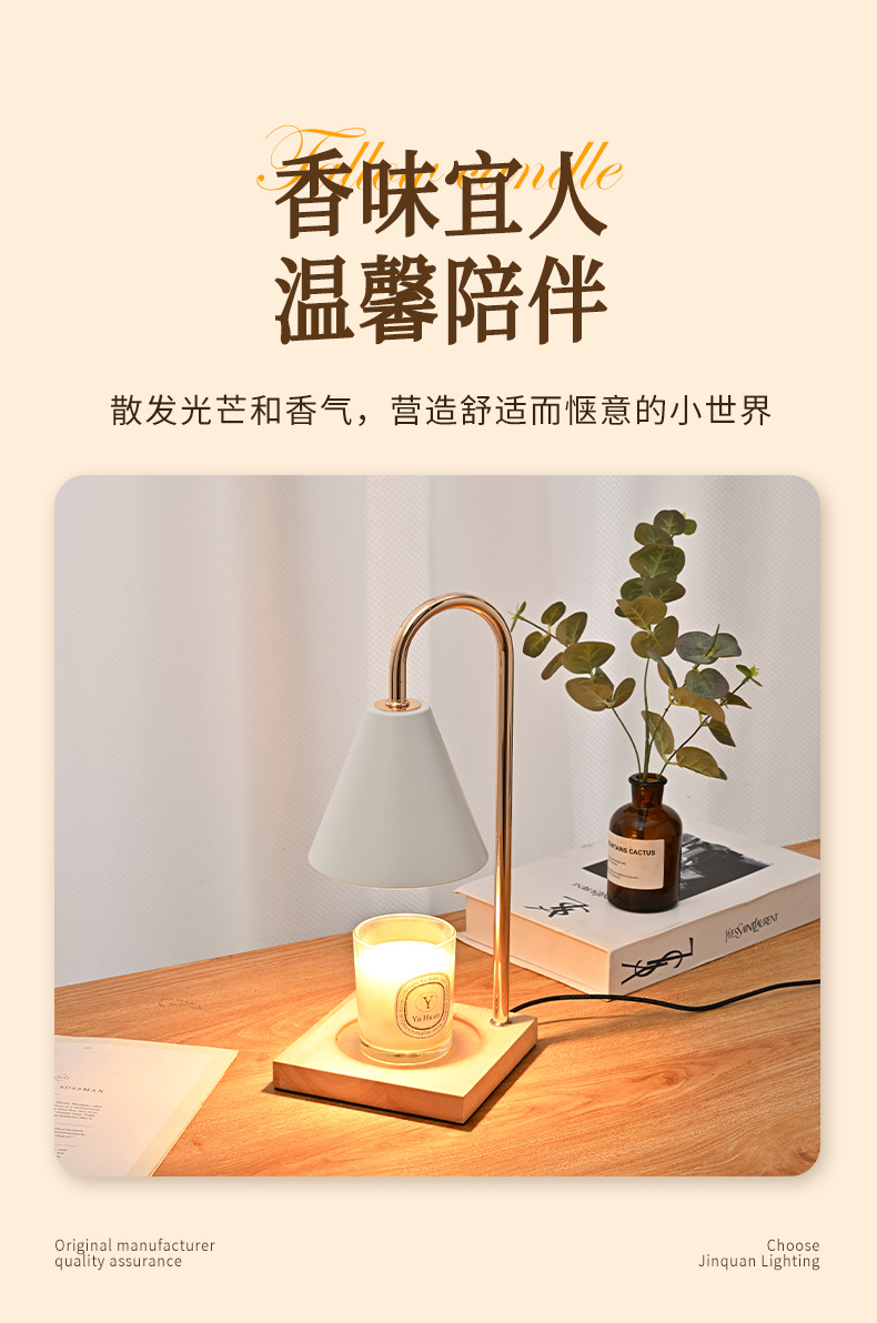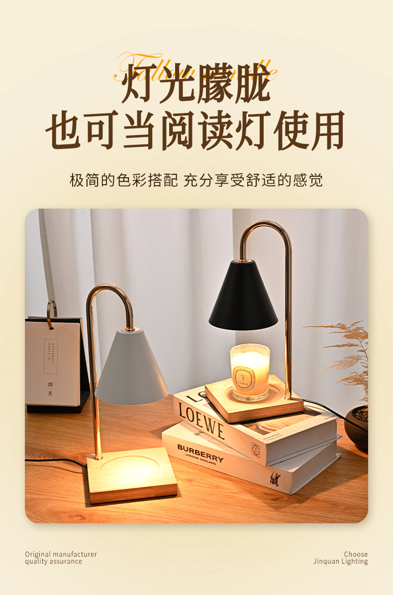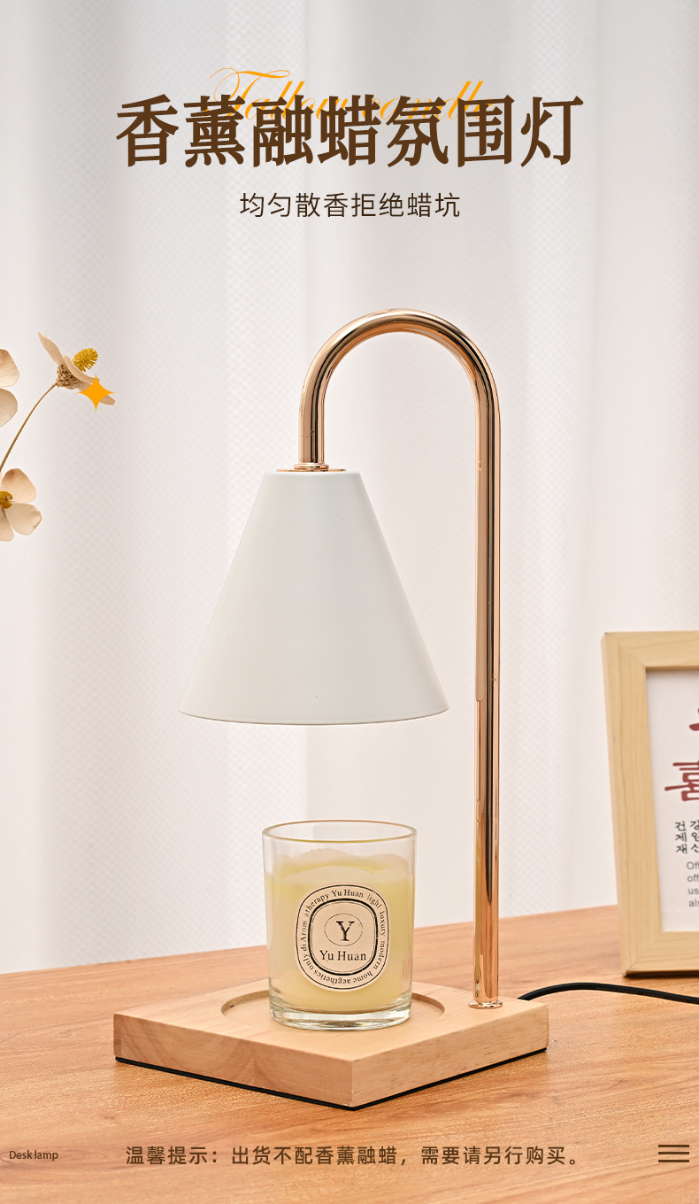 跨境专供融烛灯无明火香薰灯原木卧室护眼台灯轻奢融蜡灯高级感