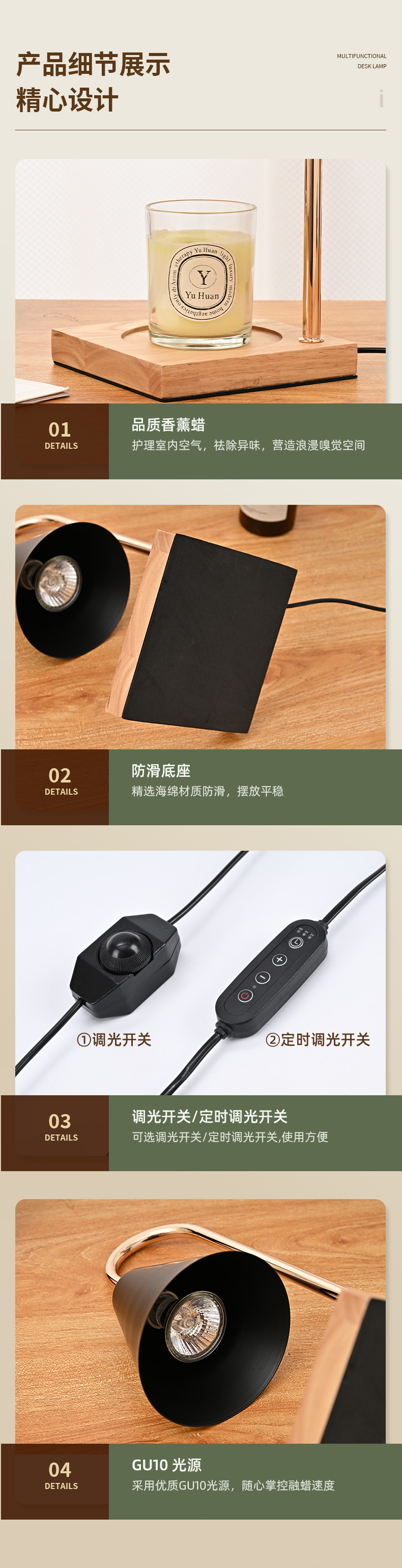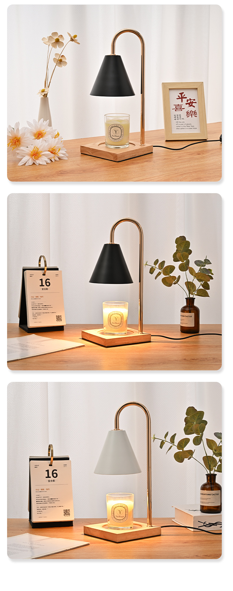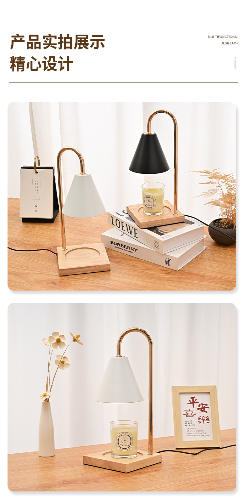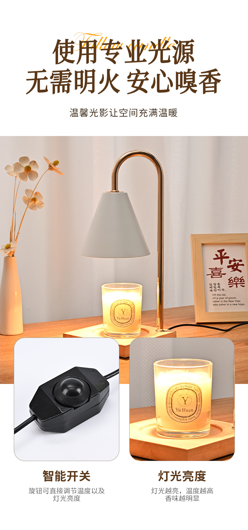 跨境专供融烛灯无明火香薰灯原木卧室护眼台灯轻奢融蜡灯高级感
