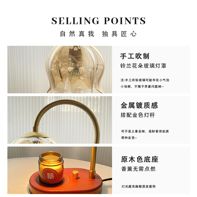新品铃兰香薰灯卧室床头台灯氛围感融蜡灯新婚礼物女生融烛灯摇控