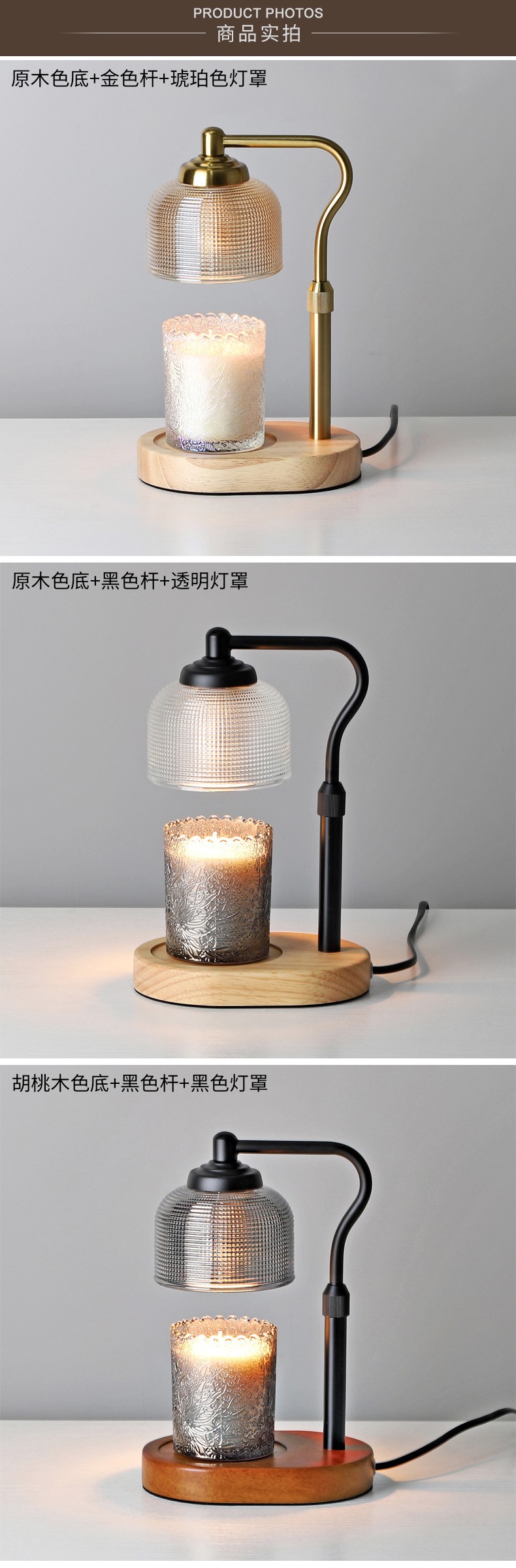 亚马逊香薰灯可定时调节高度复古卧式美式氛围融蜡灯调光可升降