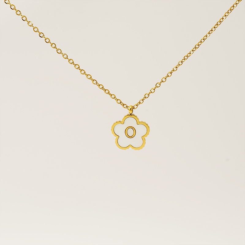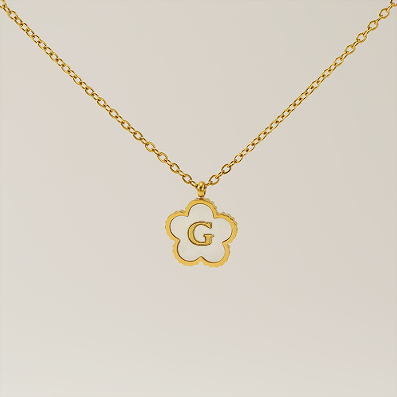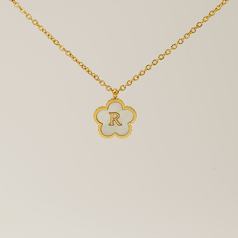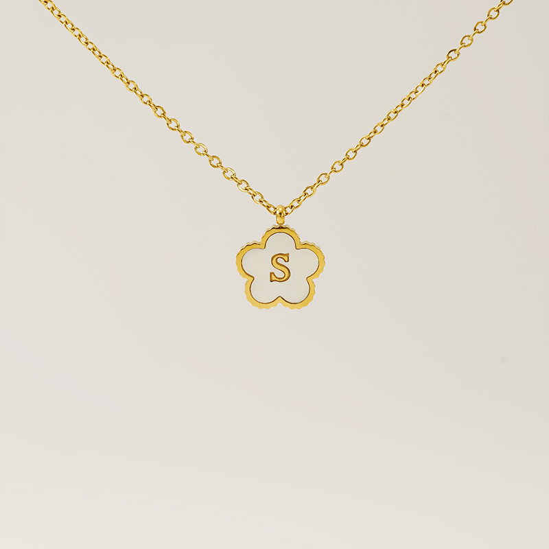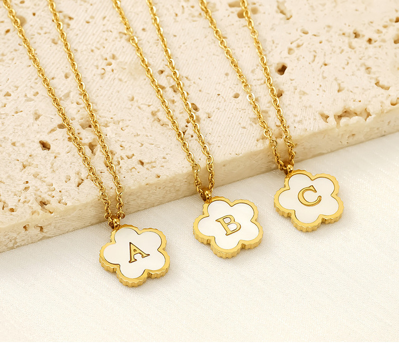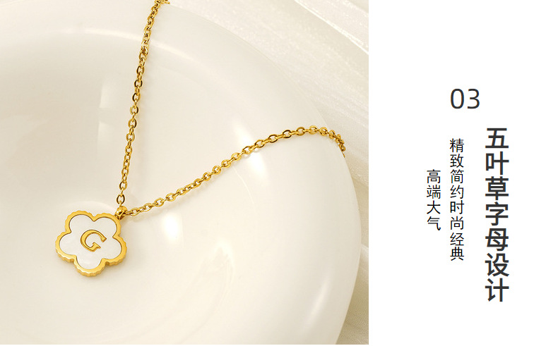 跨境欧美不锈钢五叶草18K字母项链高级感26贝壳字母吊坠饰品批发
