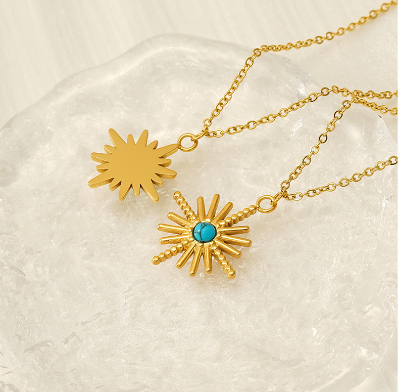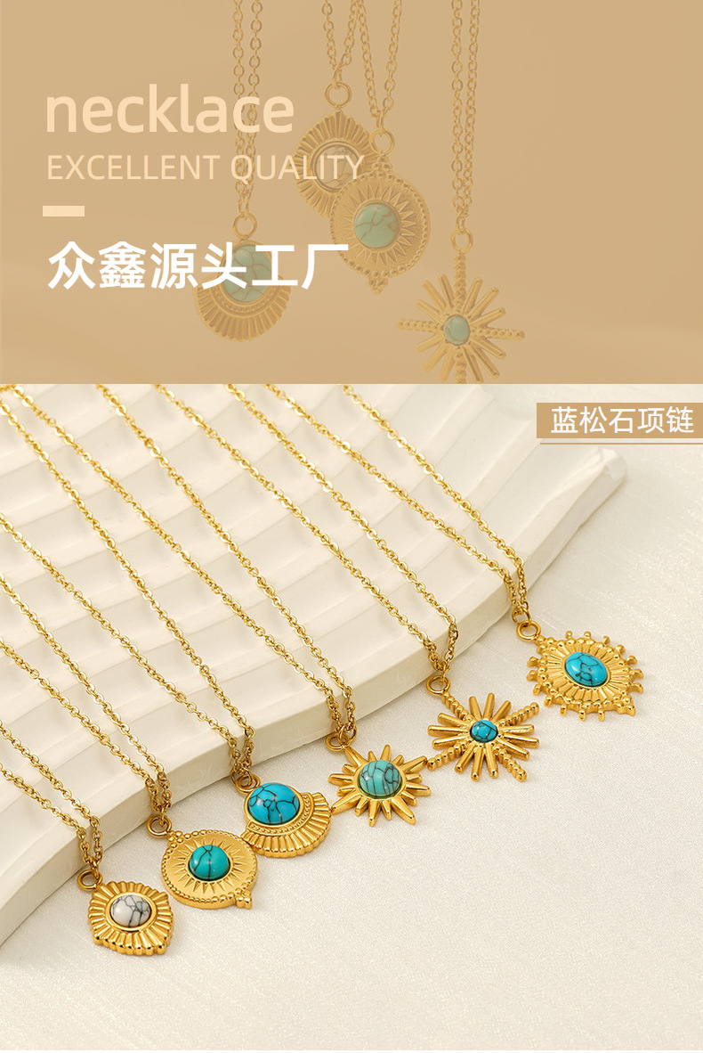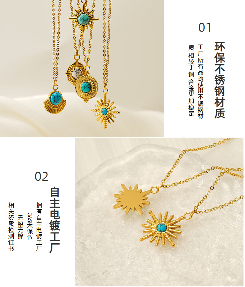 跨境法式复古风18K金不锈钢项链绿松石八芒星吊坠高级感钛钢项链