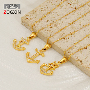 欧美钛钢爆富小金砖项链INS风笑脸吊坠18K高级感不锈钢贝壳项链女