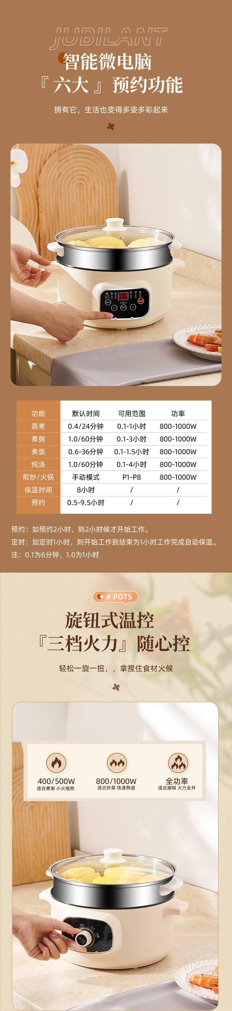 电锅智能预约电饭锅多功能宿舍家用电饭煲煮饭锅煮粥炒菜锅1一2人