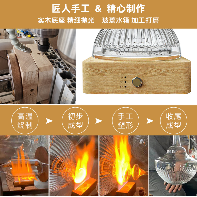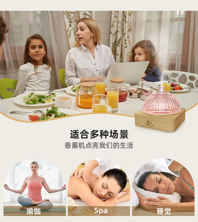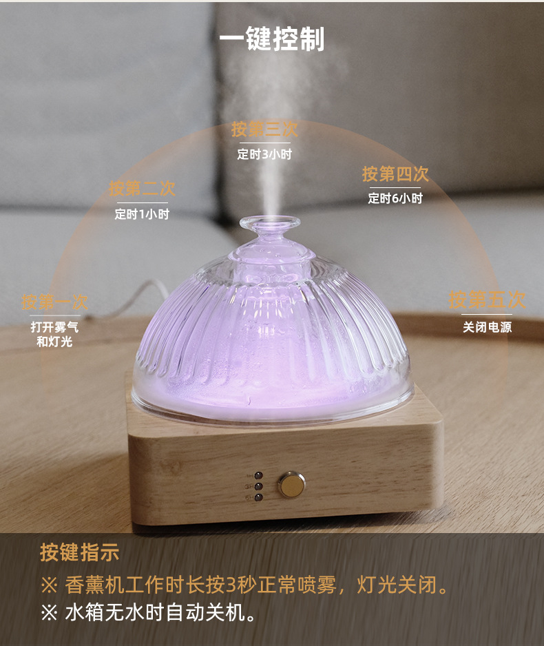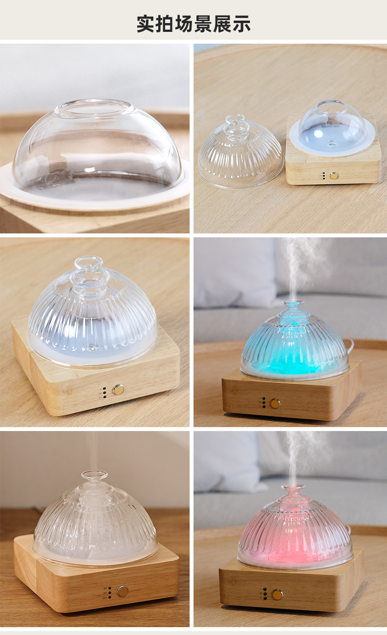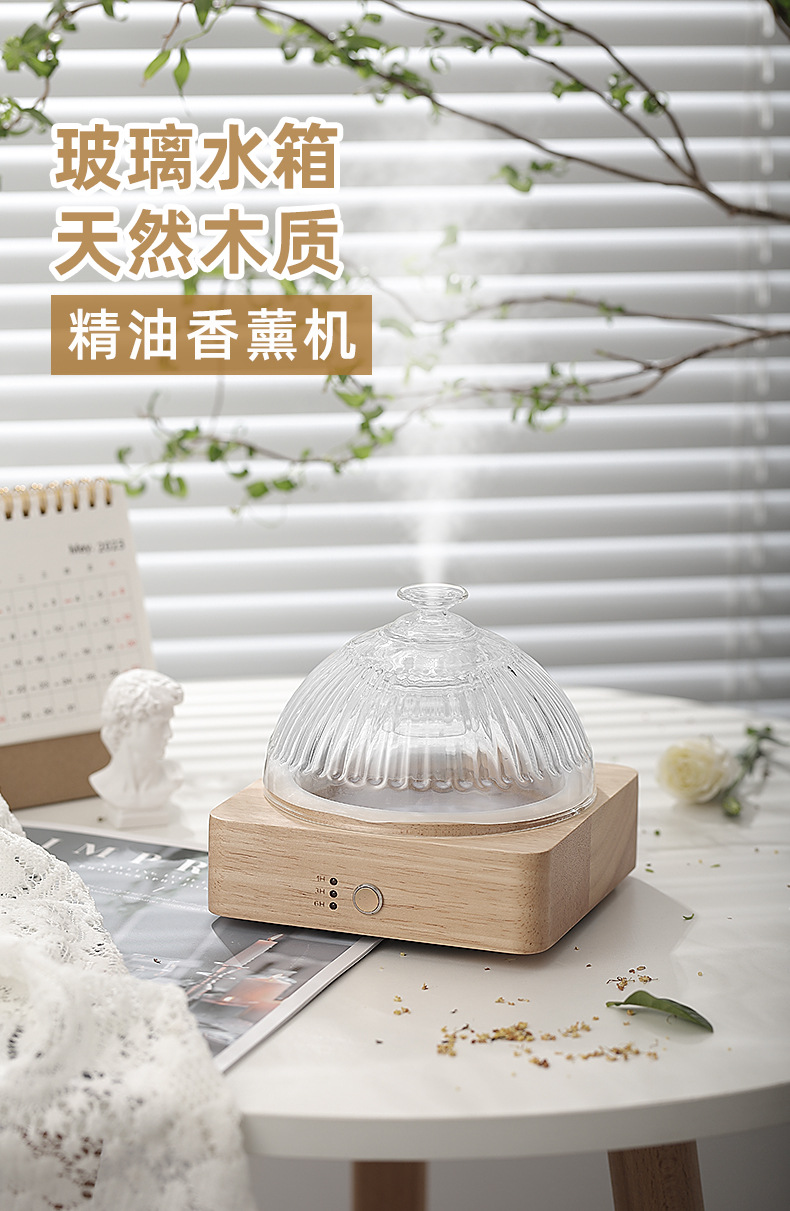 实木玻璃香薰机小型加湿器家用静音卧室超声波雾化扩香氛围香薰灯