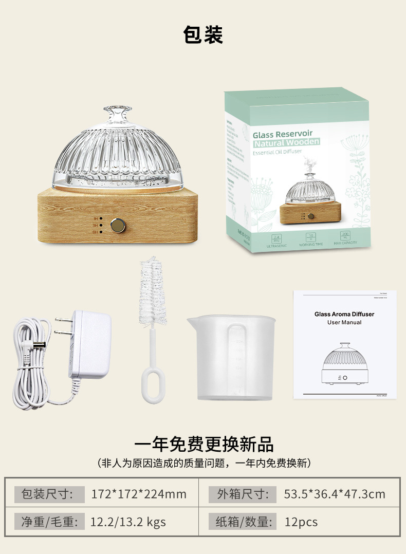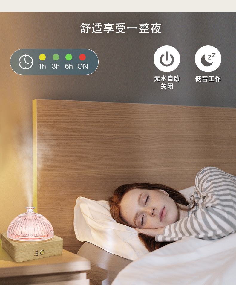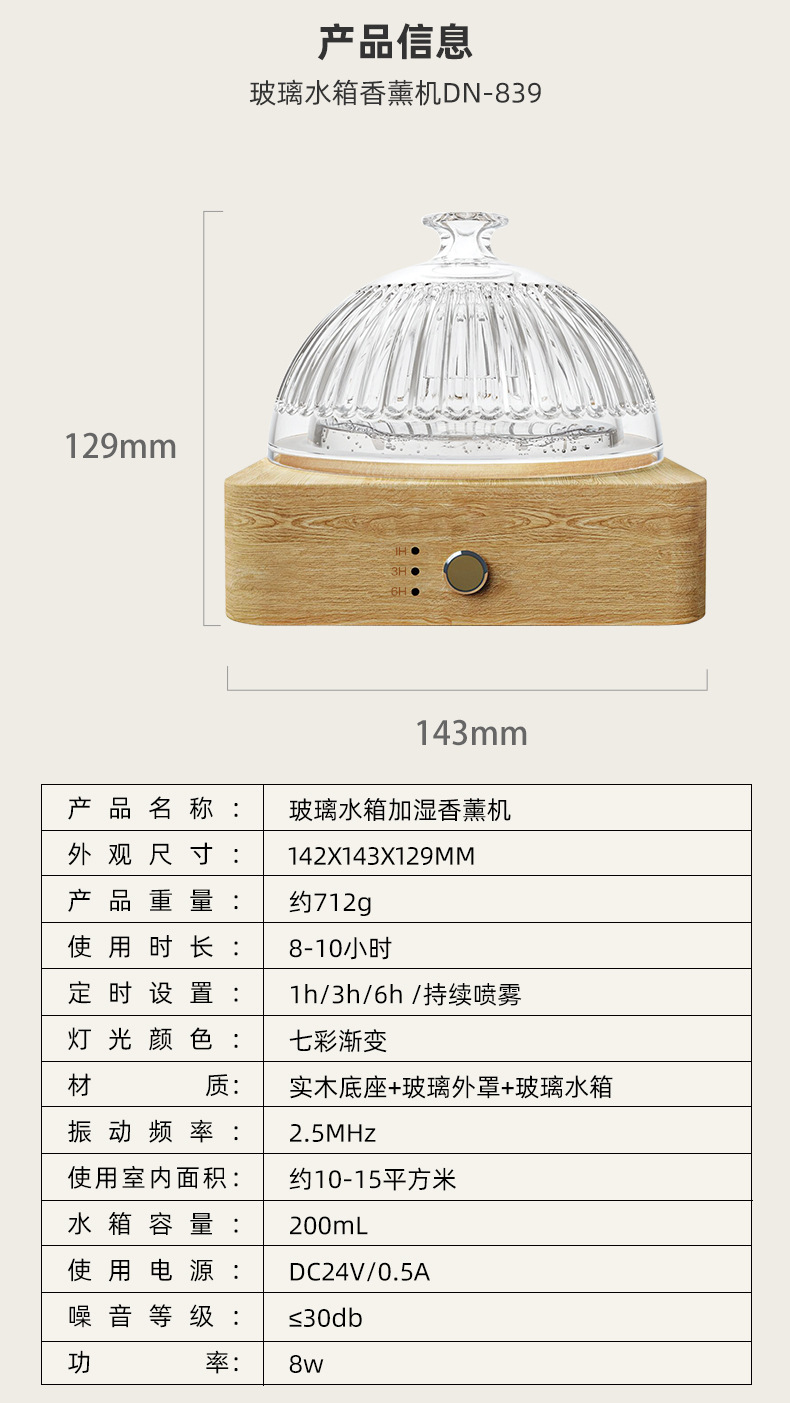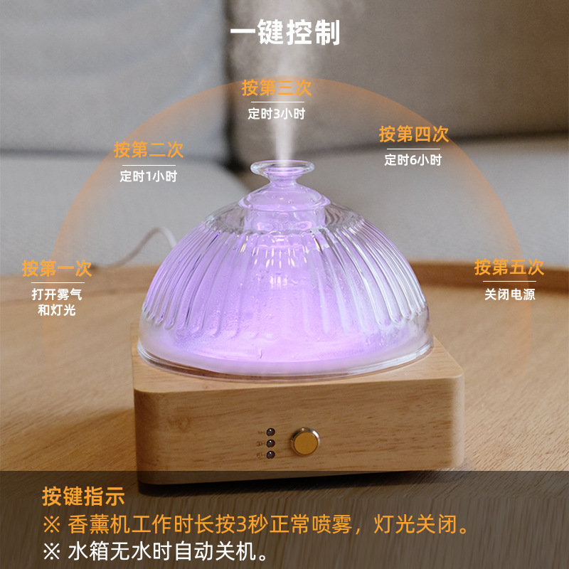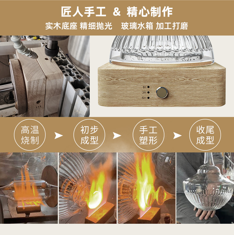 实木玻璃香薰机小型加湿器家用静音卧室超声波雾化扩香氛围香薰灯