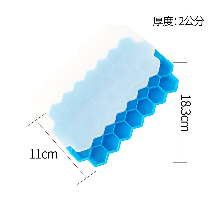 创意37格硅胶蜂窝带盖冰格冰块模具自制家用制冰盒速冻易脱模冰膜