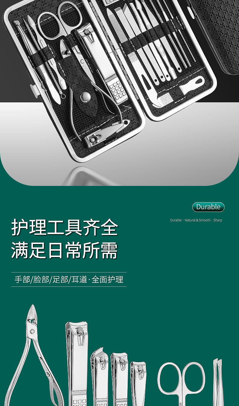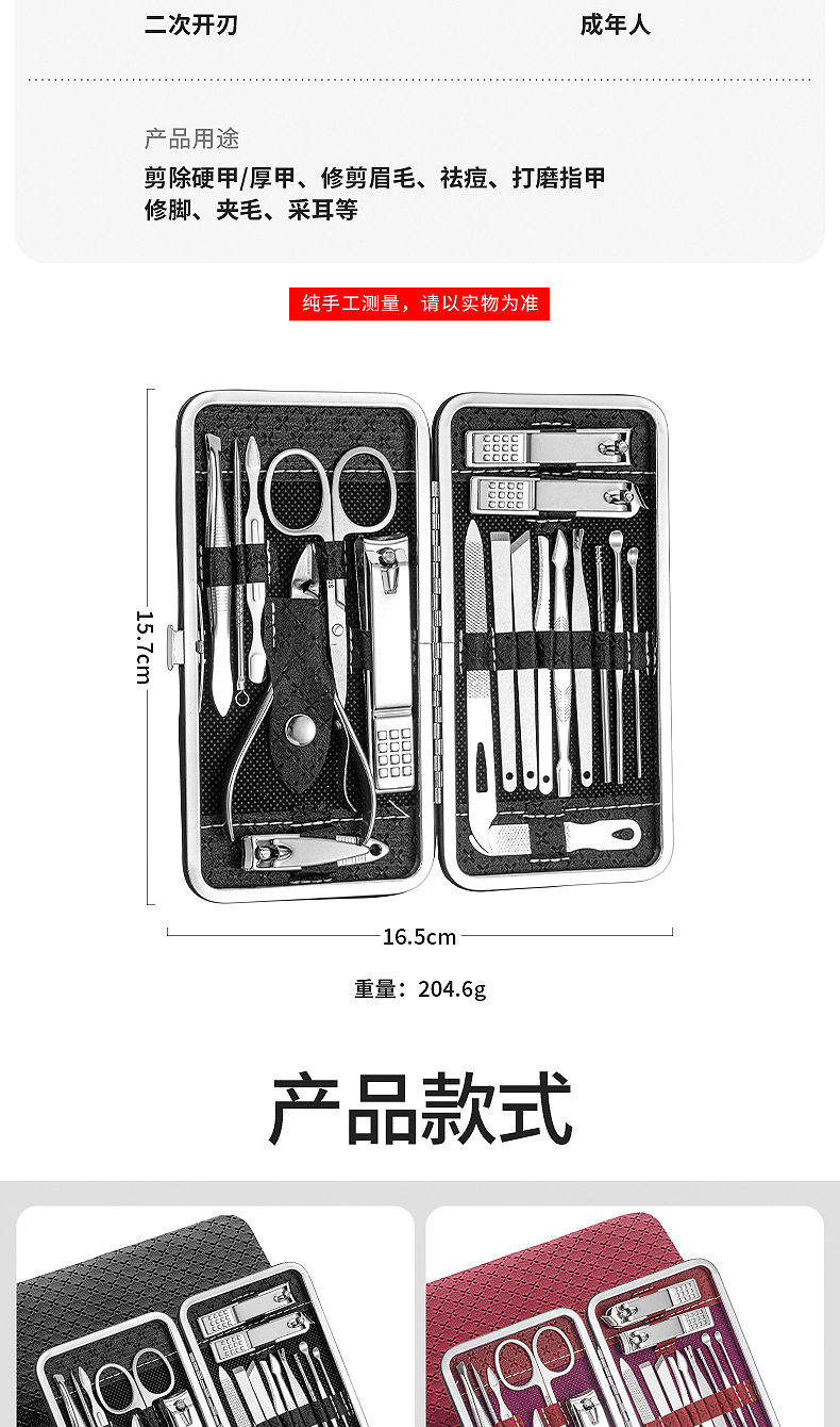 新款剪指甲刀19件套套装 斜口指甲钳修脚掏耳朵挖耳勺美甲套装