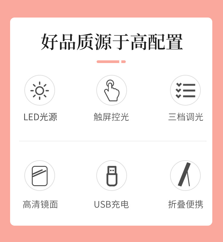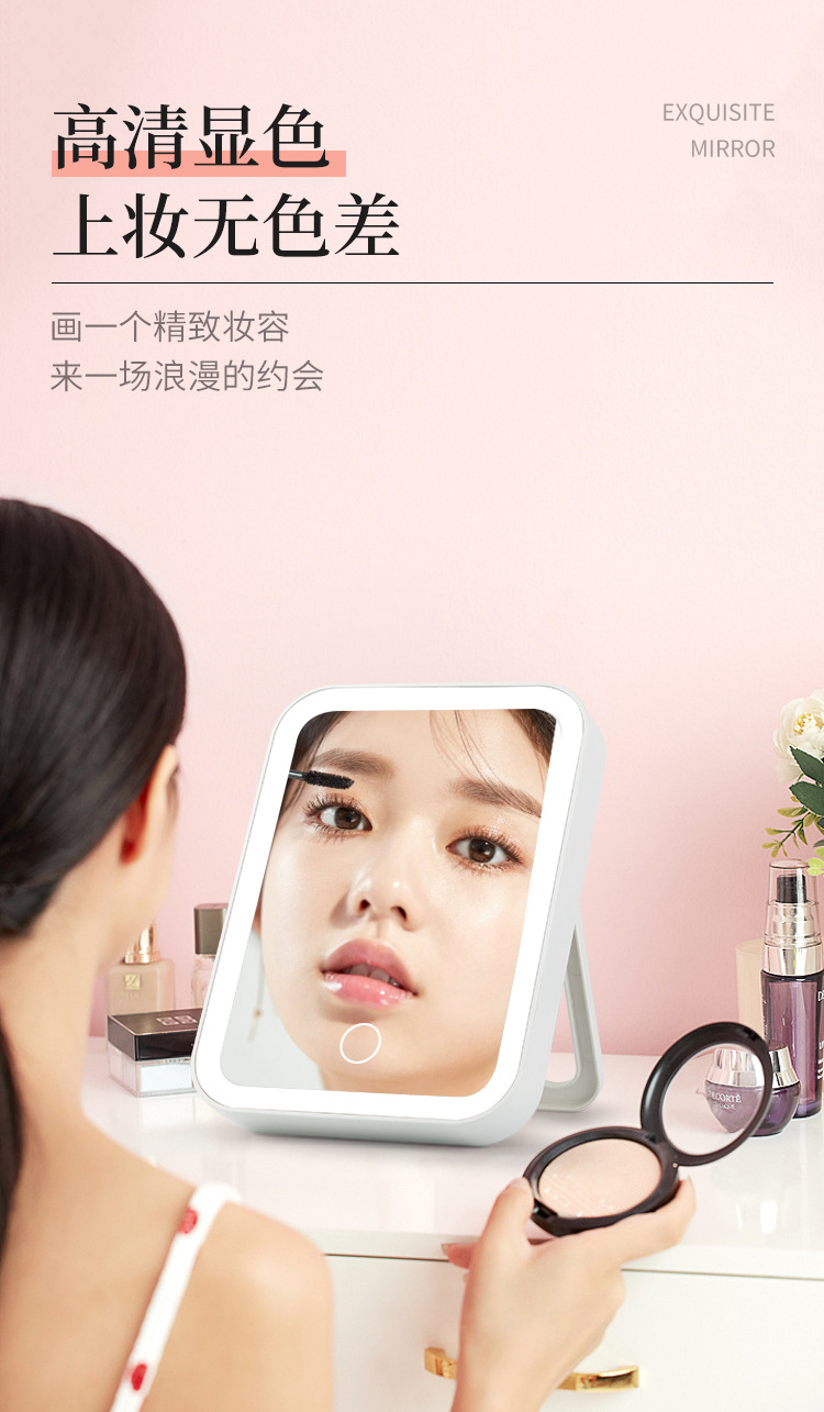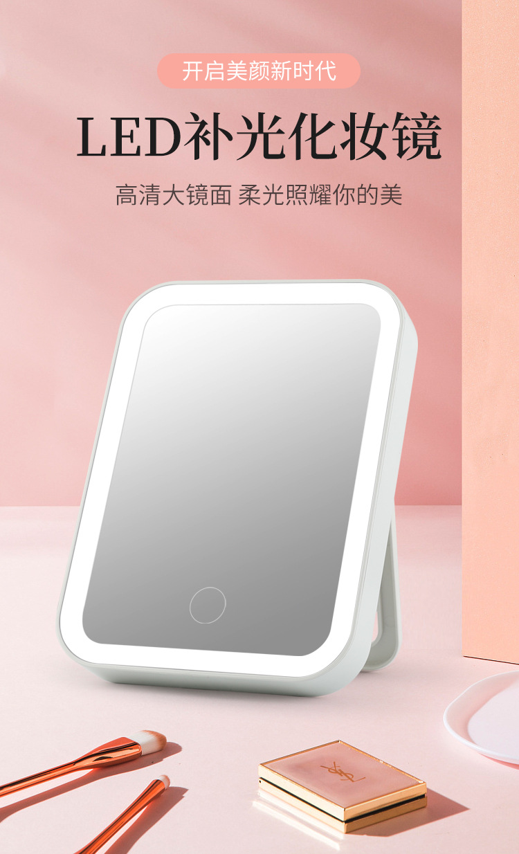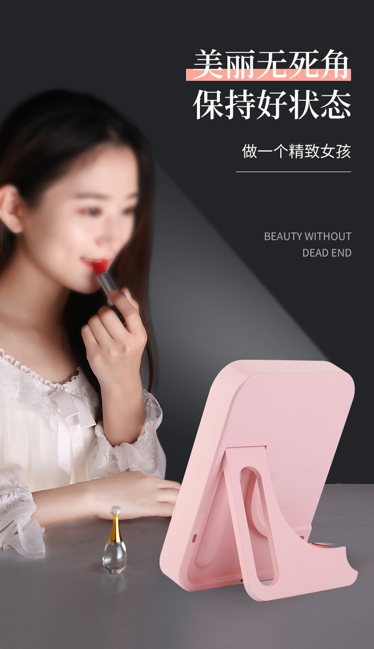 led化妆镜批发桌面高清小镜子女宿舍台式简易可折叠梳妆镜子便携