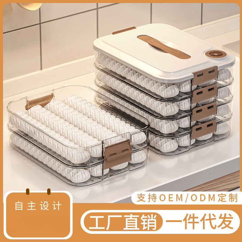 冰箱冻饺子多层食品级收纳盒冷冻长条保鲜盒家用饺子速冻保鲜盒