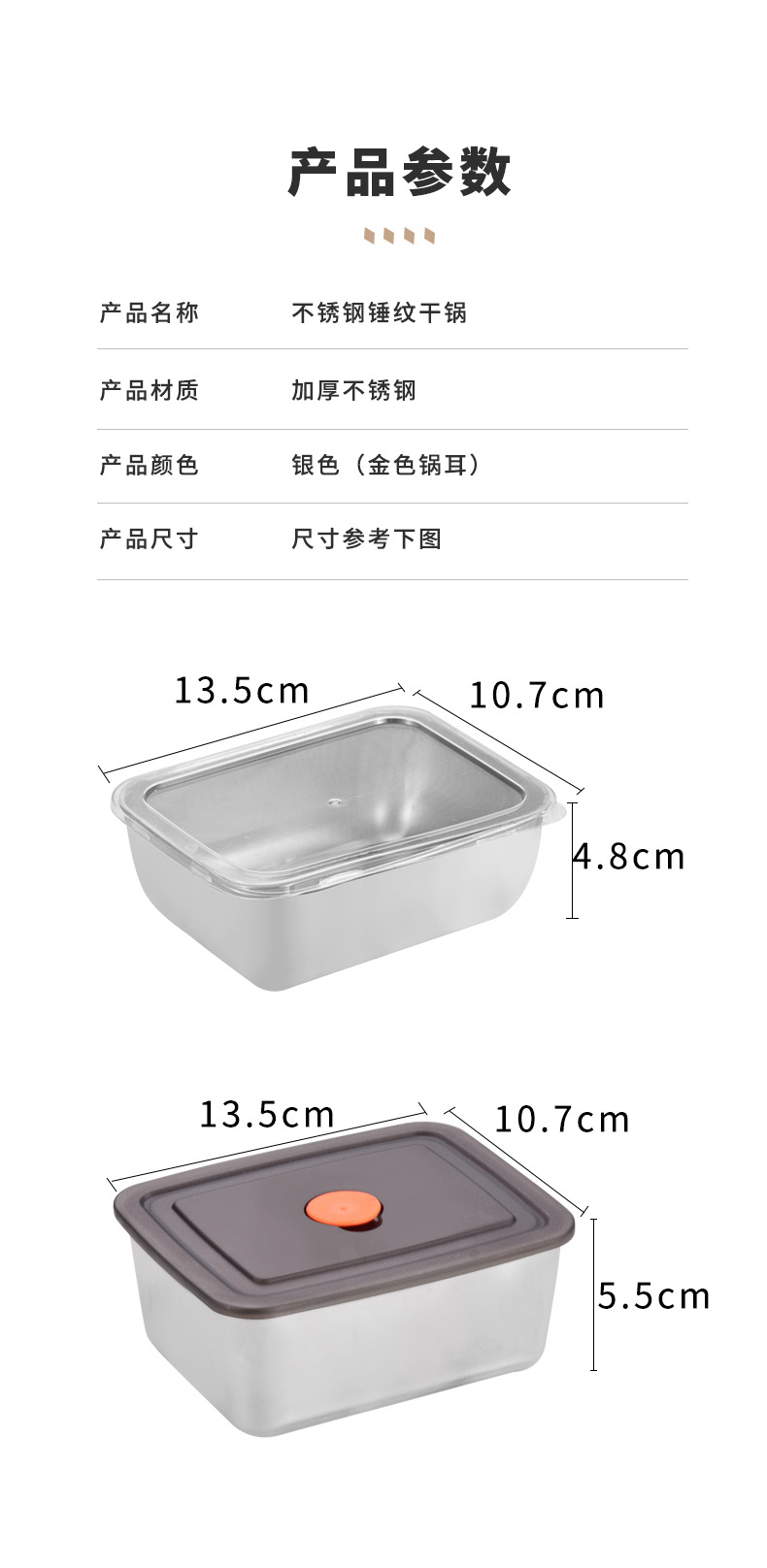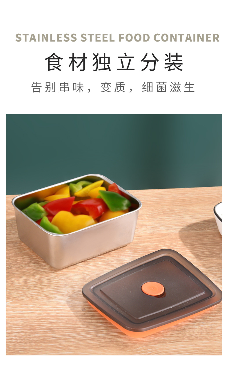 跨境不锈钢食品保鲜盒密封食品级冰箱饺子冷冻盒水果留样盒带盖