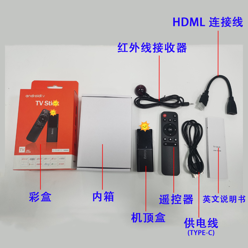 标配包括:机顶盒+红外电源线+高清线+遥控器
