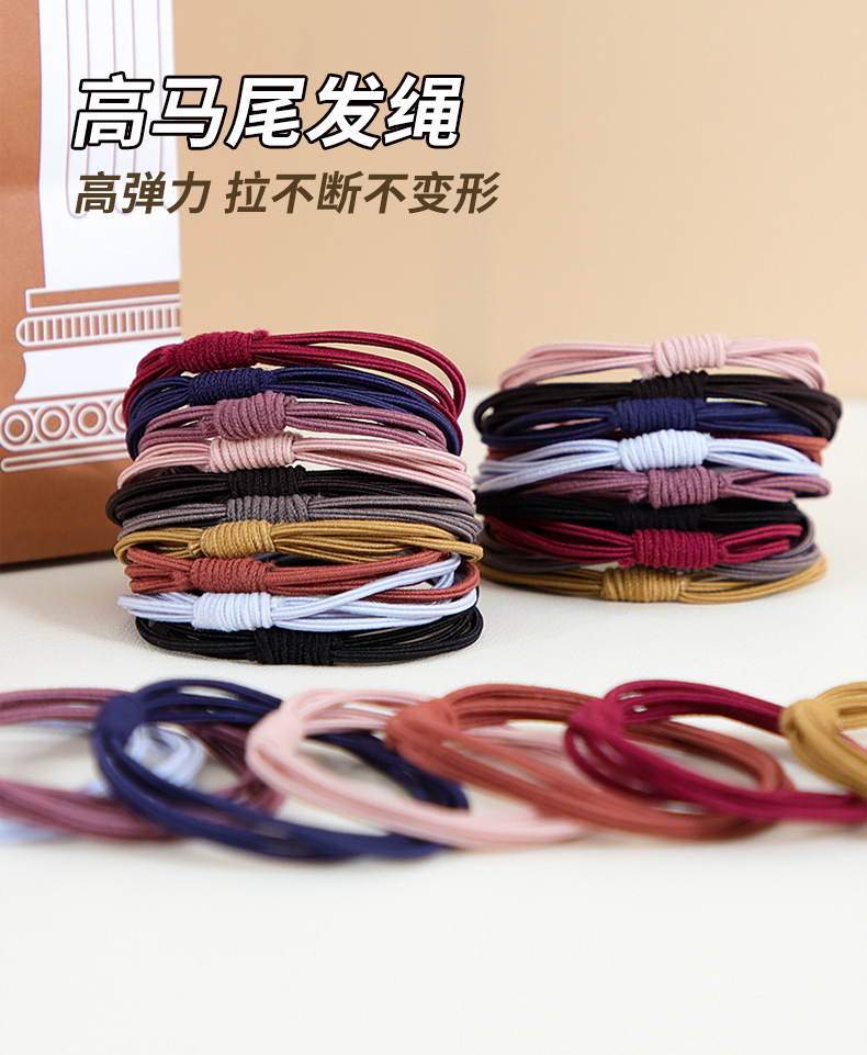 4合1高弹力打结女扎头发头绳橡皮筋简约发绳发圈绑头发头饰扎马尾
