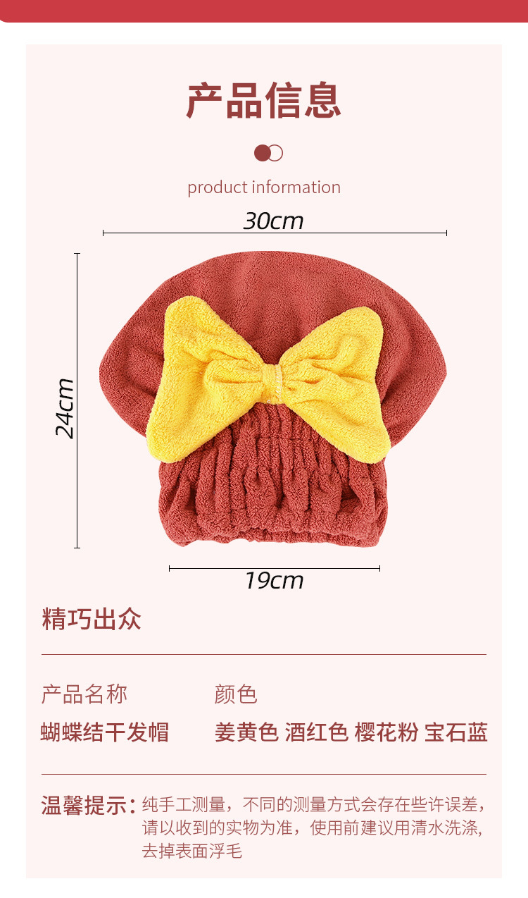 大蝴蝶结超强加厚速干吸水女公主帽干发巾洗头发包头巾干发帽浴帽
