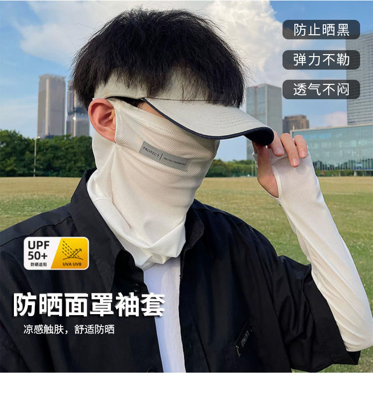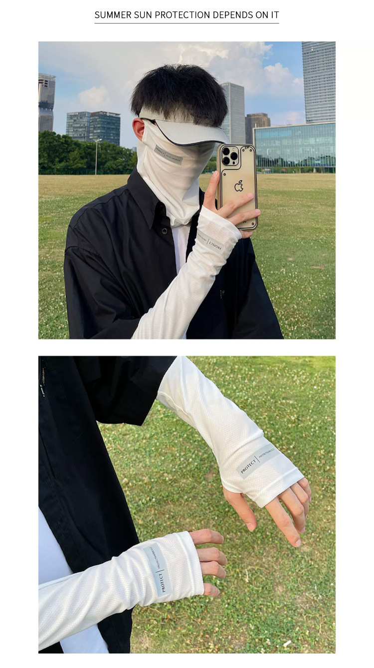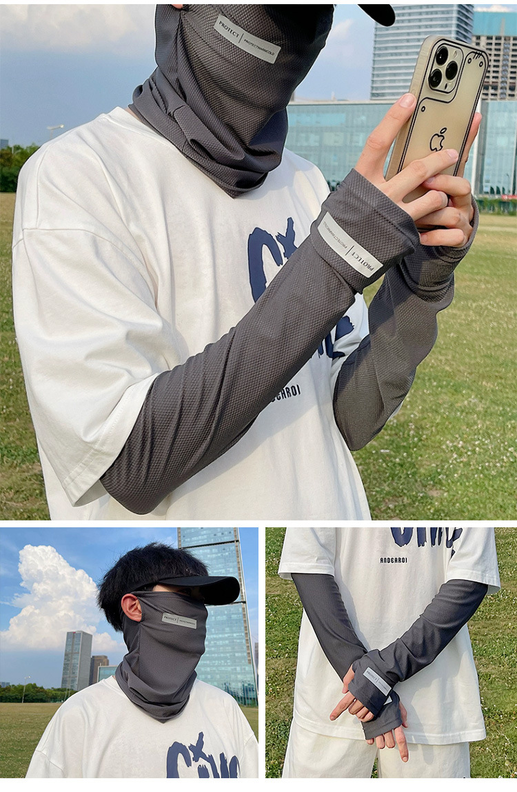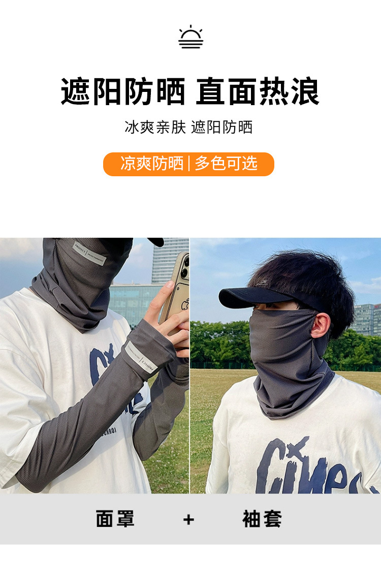 防晒冰袖面罩男款口罩面纱冰丝袖套手套遮全脸脸基尼套袖护臂脸罩
