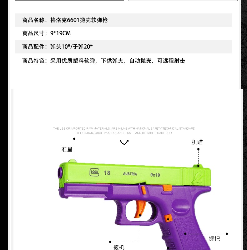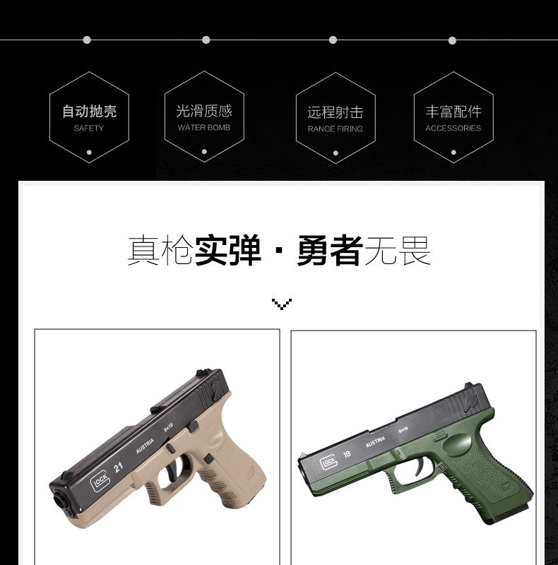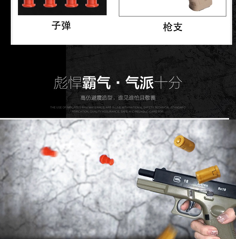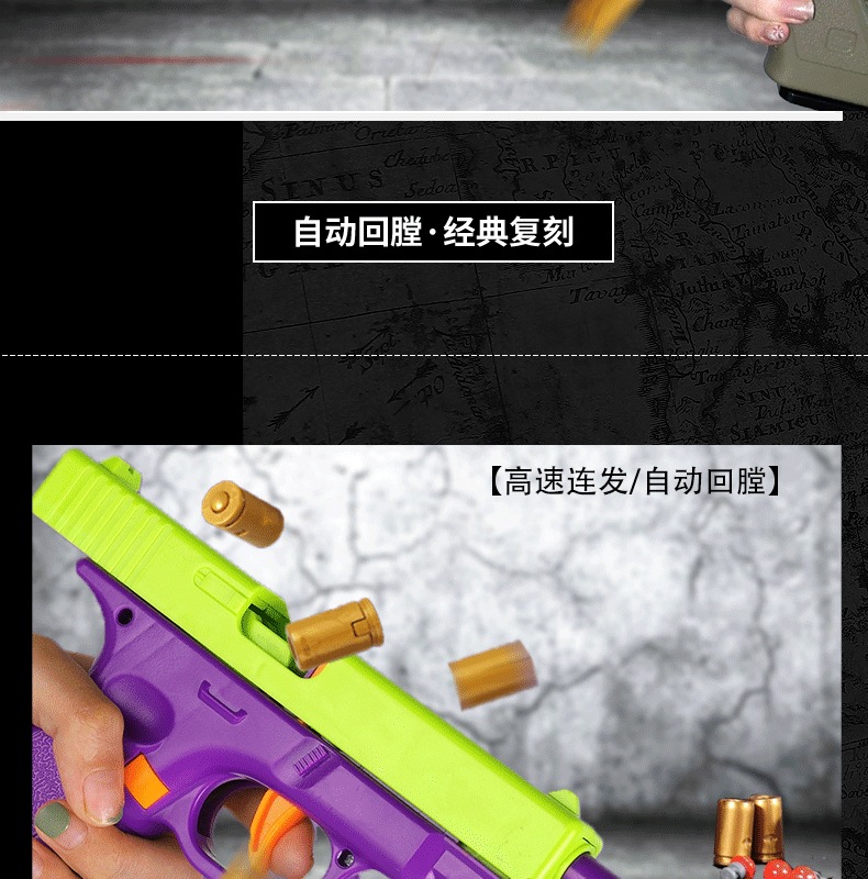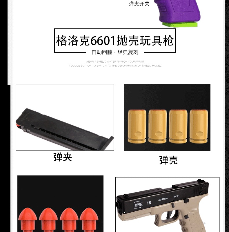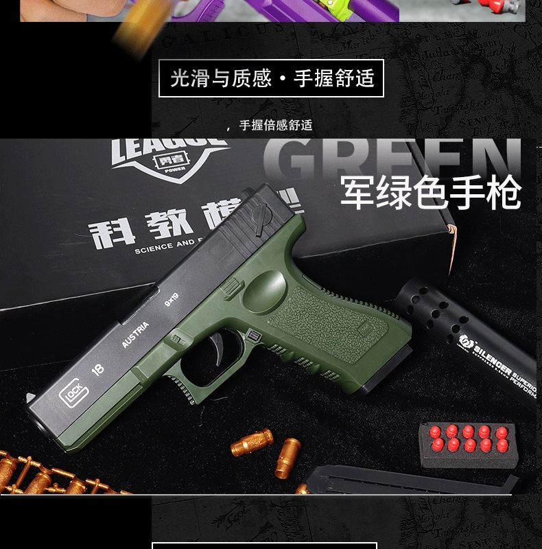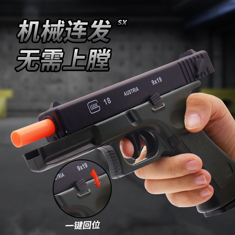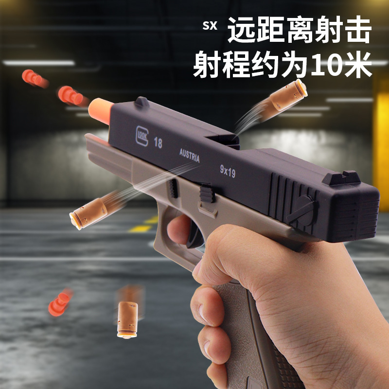 跨境软弹枪格洛克机械自动连发抛壳枪儿童仿真男孩手枪科教模型