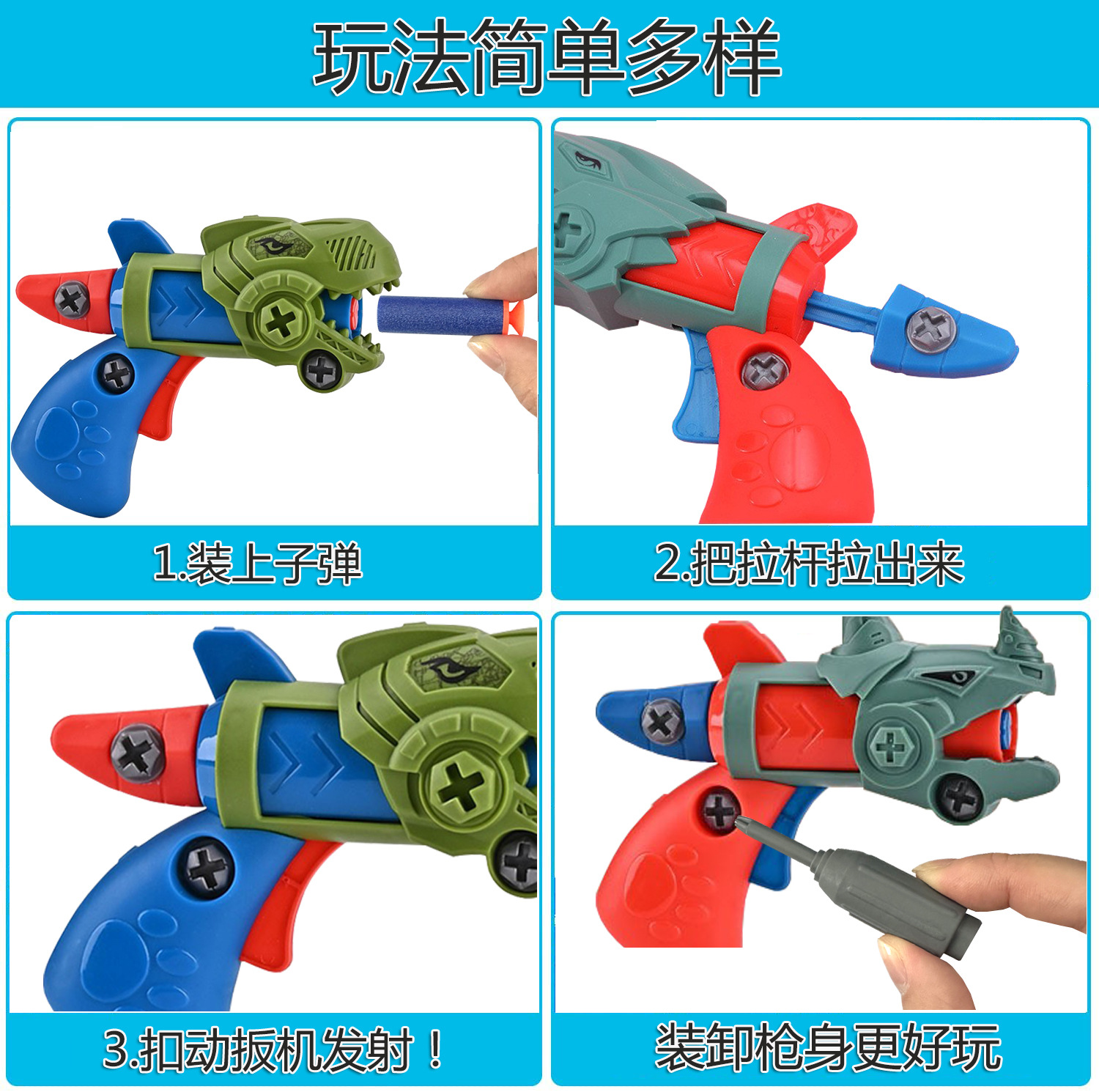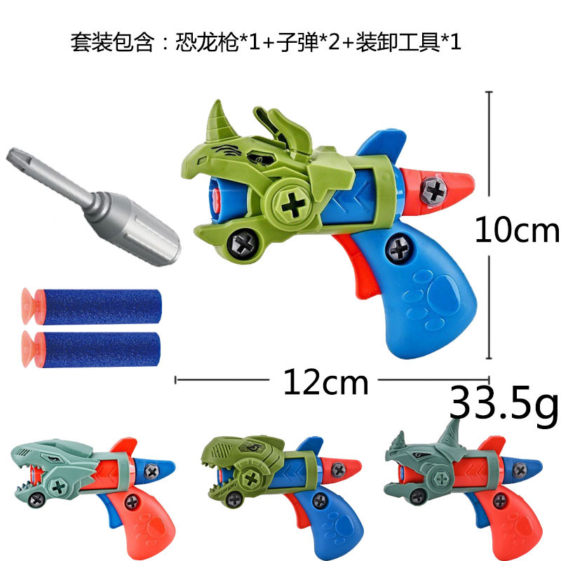 跨境拆装恐龙软弹枪非电动手动上膛吸盘海绵软弹拧螺丝射击枪