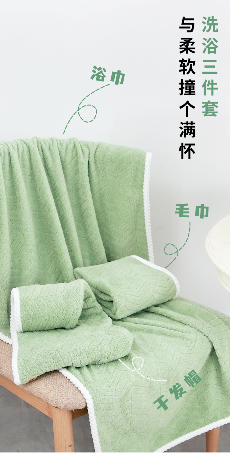 洗澡浴巾女可裹家用男速干吸水大人成人大号毛巾裹巾干发帽三件套