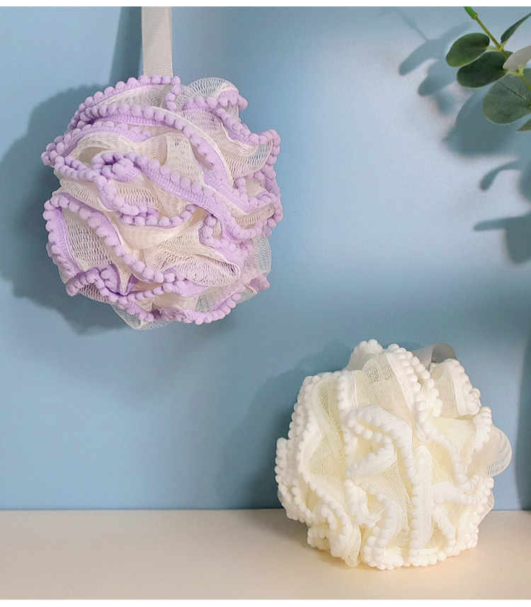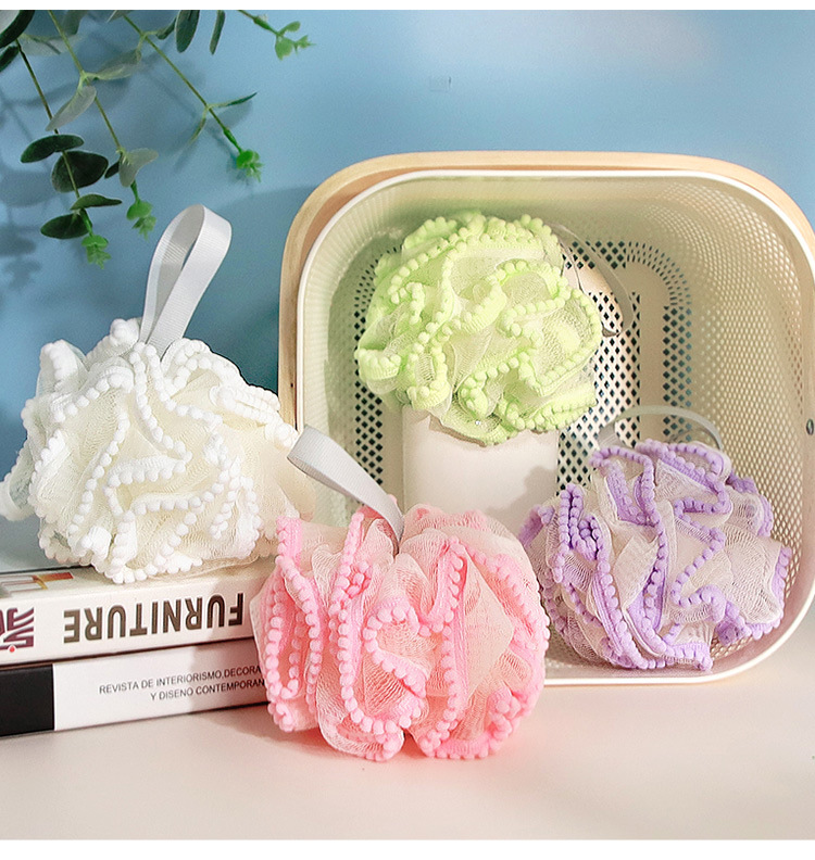 高档可爱少女珍珠不散沐浴球女沐浴花泡澡球洗浴洗澡搓背起泡澡花