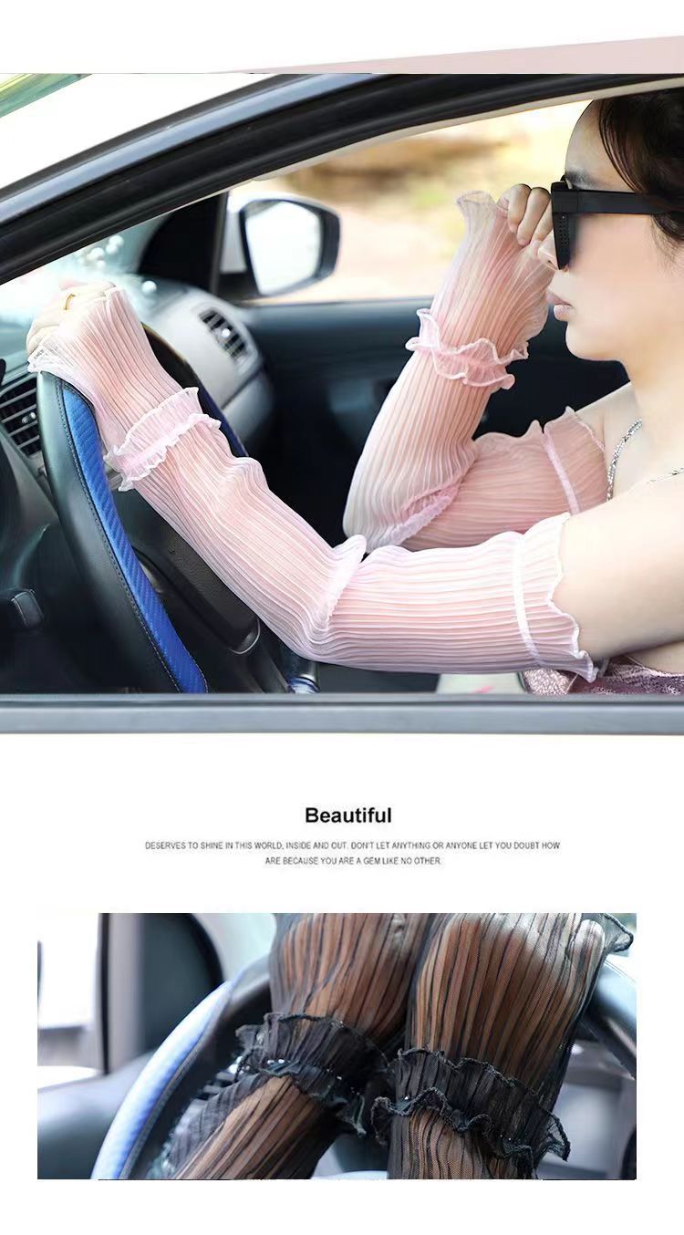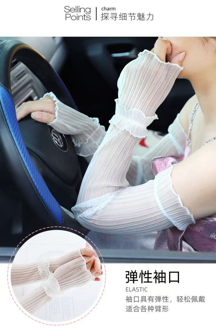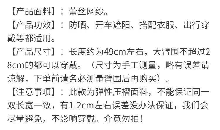 防晒袖套女防紫外线护臂手臂套夏天开车网纱手套蕾丝冰袖宽松户外