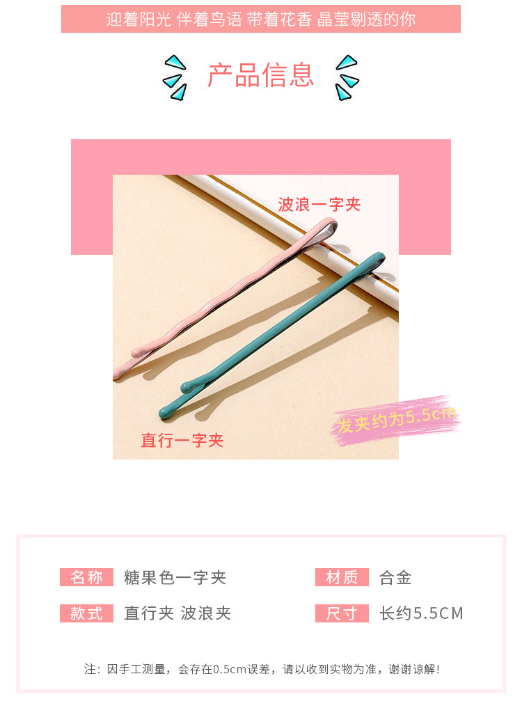 彩色马卡龙色刘海夹一字夹发卡侧边夹碎发夹彩虹小夹子少女必备夹