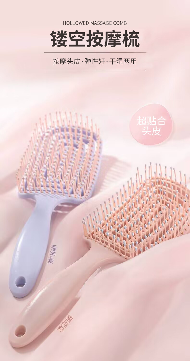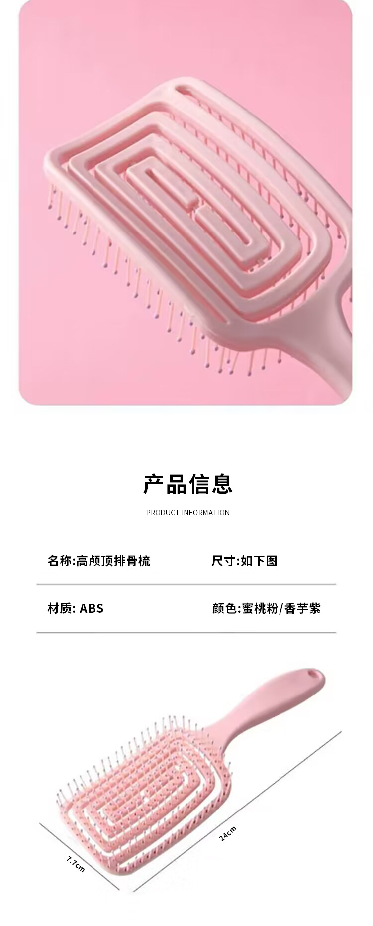 高颅顶蓬松头发神器镂空梳子蚊香梳女士专用长发卷发排骨梳大弯梳