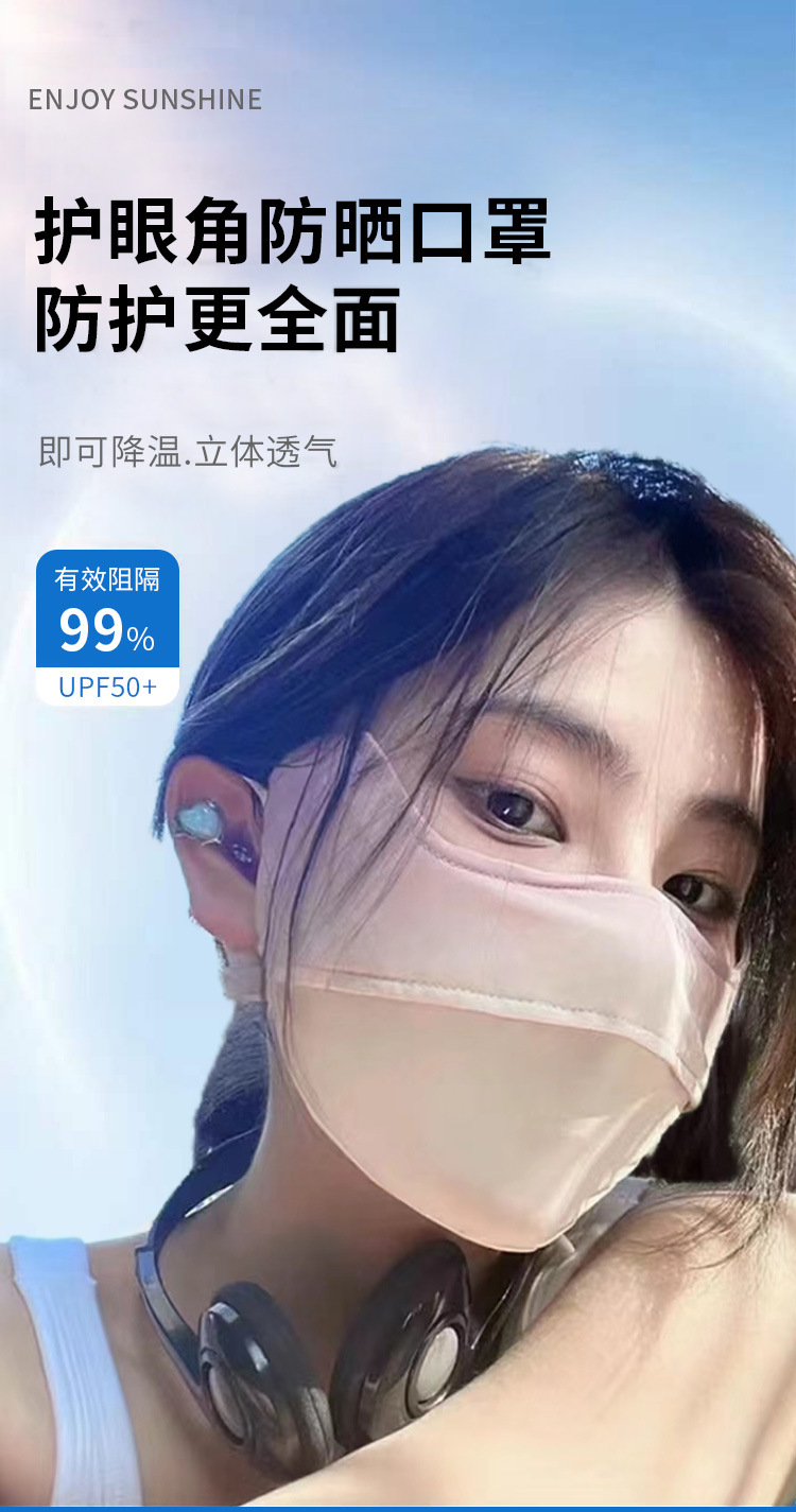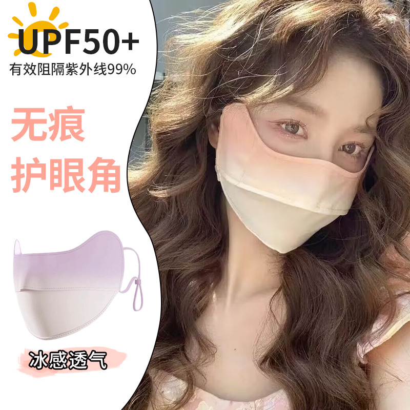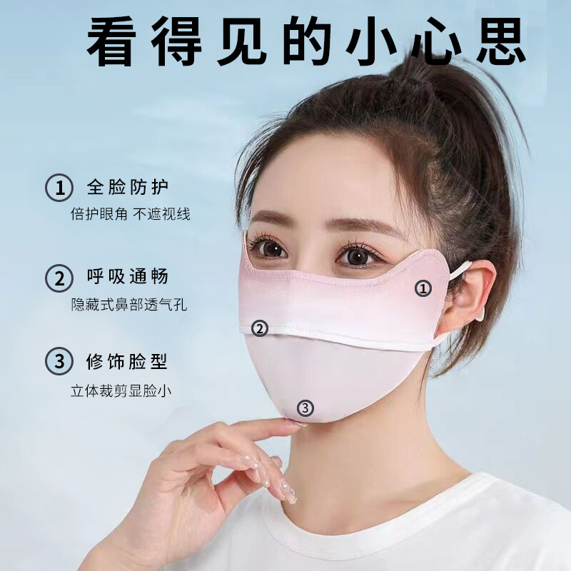 冰丝渐变色夏季遮阳防晒面罩女防紫外线面纱骑行薄款透气口罩脸罩