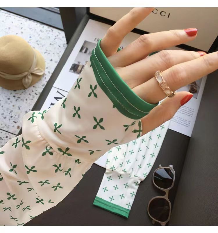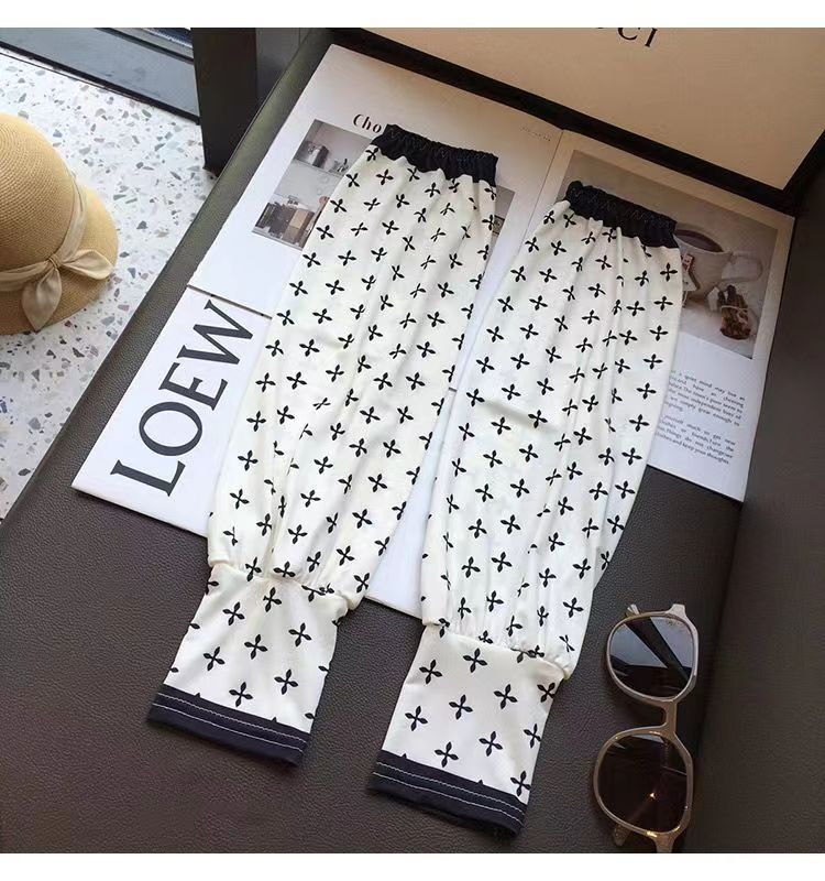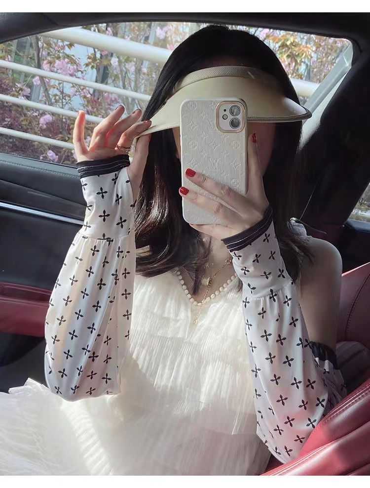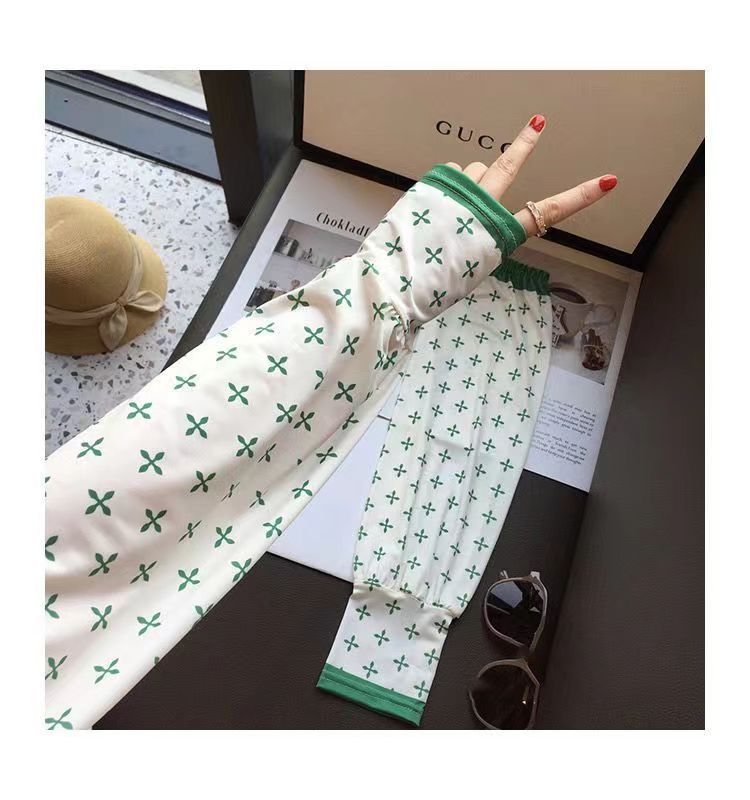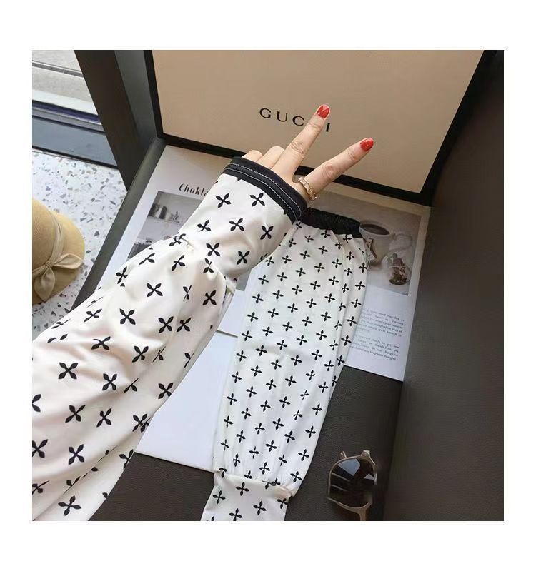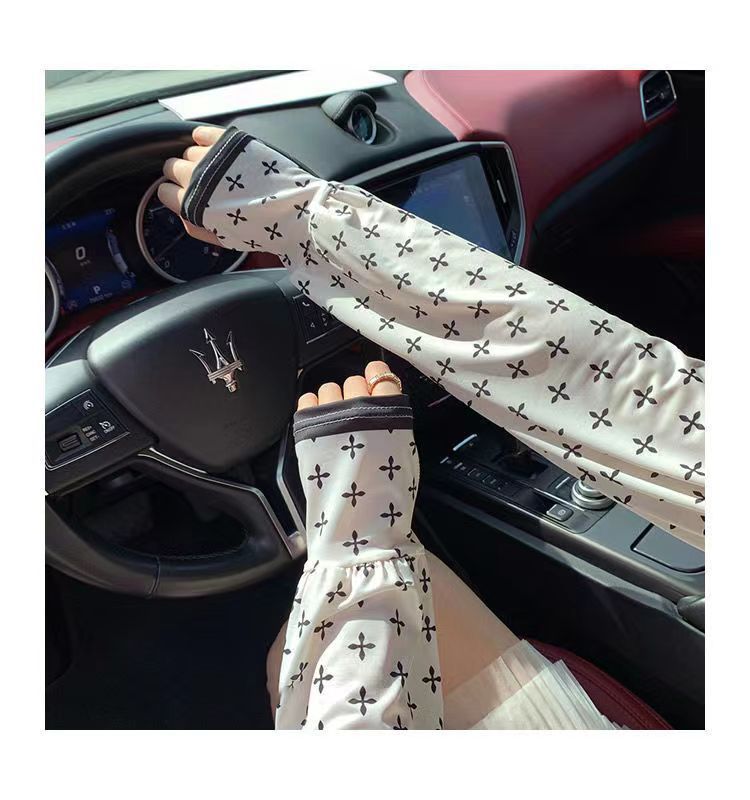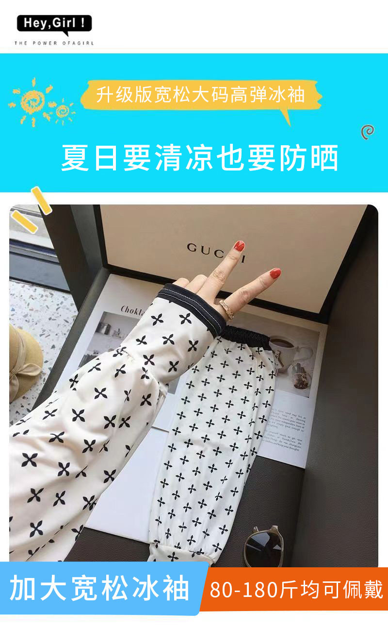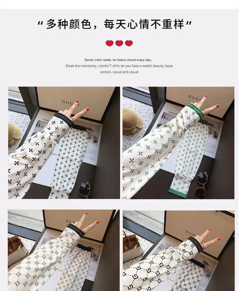 夏季宽松字母褶皱设计冰丝袖套户外开车防紫外线护臂手袖防晒冰袖